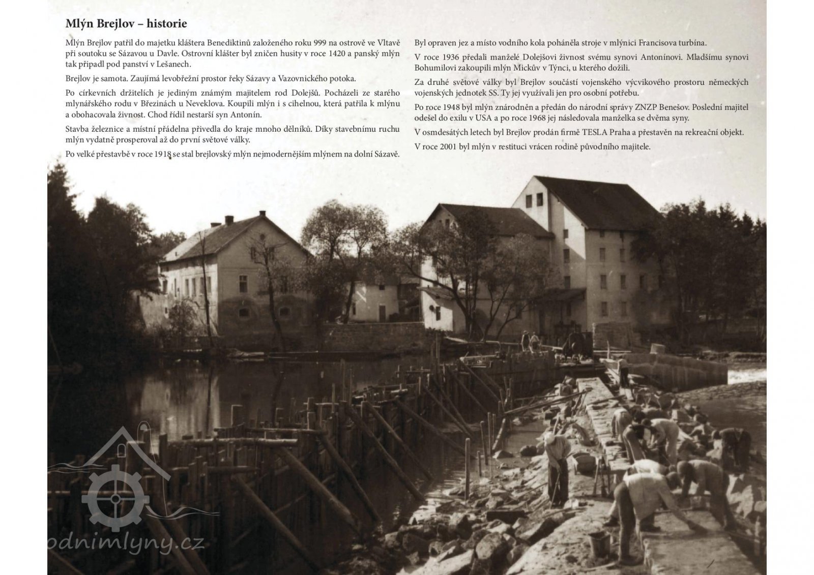 Po velké přestavbě v roce 1918 se stal brejlovský mlýn nejmodernějším mlýnem na dolní Sázavě. Byl zvýšen jez, přistavěna druhá mlýnice a místo vodního kola poháněla stroje Francisova turbína.