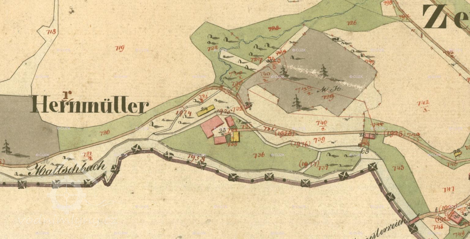 Panský, Osenův mlýn; Hernmühle, Hernmüller