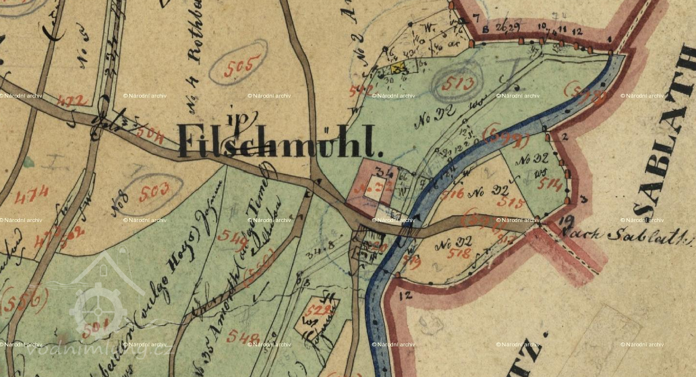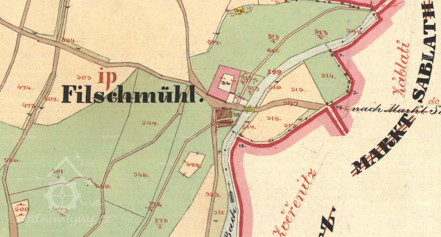 Na mapách stabilního katastru je zakreslen velký statek který už nese jméno Filschmühle (opraveno na Filipsmühle) ke kterému byla později postavena samostatná mlýnice, která je do map dodatečně dokreslena.