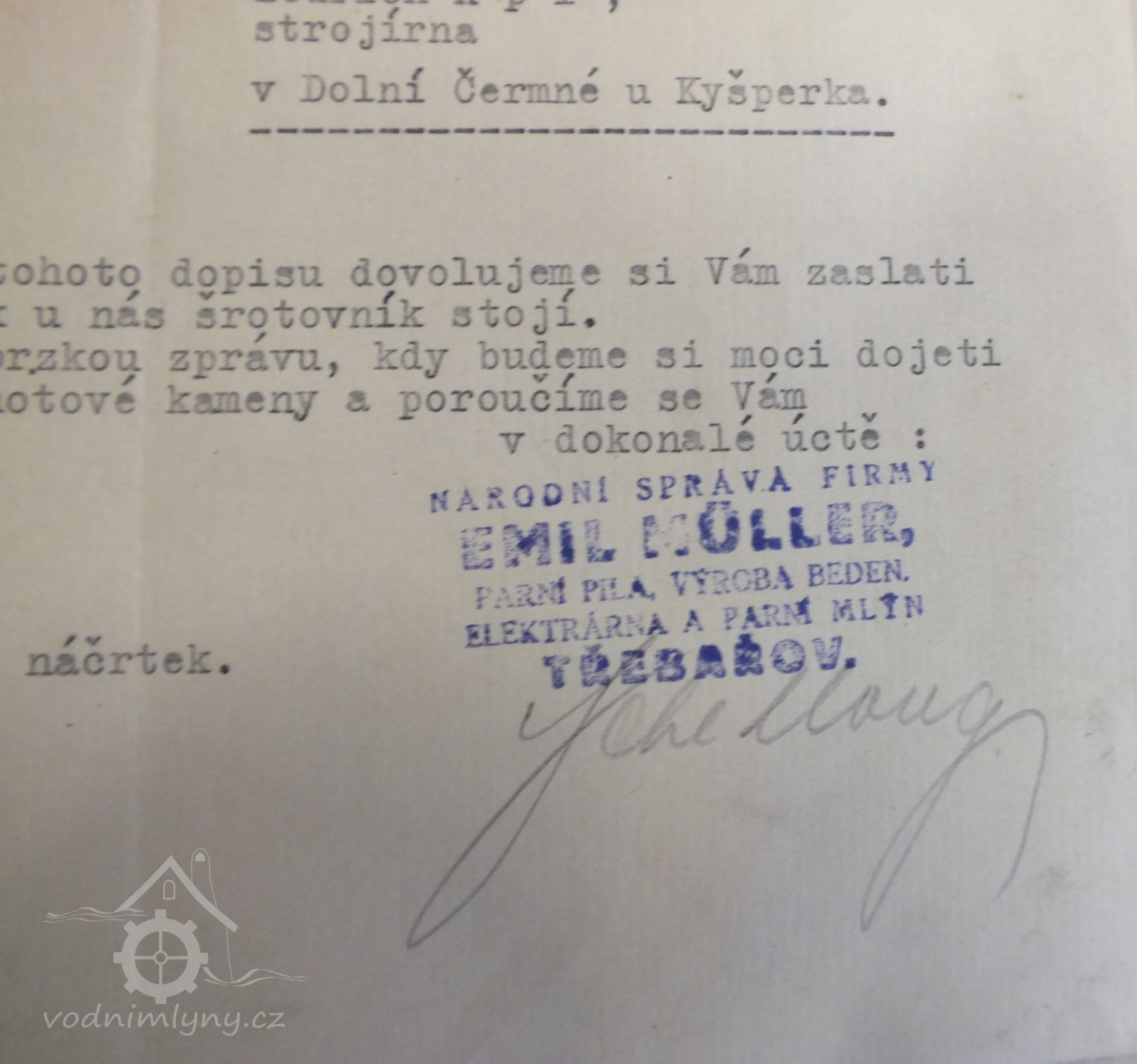 1.1.1773 od správy zábřežského vekostatku koupili za 800 zl. hotově složených dva třebovští poddaní - Jan Haabiger, dědičný rychtář v Mladějově a Václav Blösl, sedlák v Rychnově. Jelikož dosavadní mlynář Kristián Wagner z důvodu vysoké či naopak nízké vody mleče z Rychnova a Mladějova obsluhoval liknavě, nabídli se tito dva, že mají místo pro zřízení malých mlýnů o jednom složení v těchto dvou vesnicích. Toto se jim povoluje s tím, že v třebařovském mlýně se dvě složení ruší (redukují se z 5 na 3). Celkový odvod se nyní převádí na dolnorakouské jednotky, tedy 6 měřic 6 achtlů pšenice, 353 měřic 54 achtly pěkného žita, 100 měřic 6 achtlů smíšeného žita, 5 měřic 3 achtly prosa, přičemž přímo z třebařovské mlýna se bude odvádět 19 zl. 40 kr. náhradou za vykrmení prasat na sádlo, 4 měřice pšenice, 212 měřic pěkného žita, 60 měřic 6 achtlů smíšeného žita, 5 měřic 3 achtly prosa.