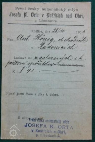 1930, 1936 Josef K. Ort, 1. český automatický mlýn a elektrocentrála