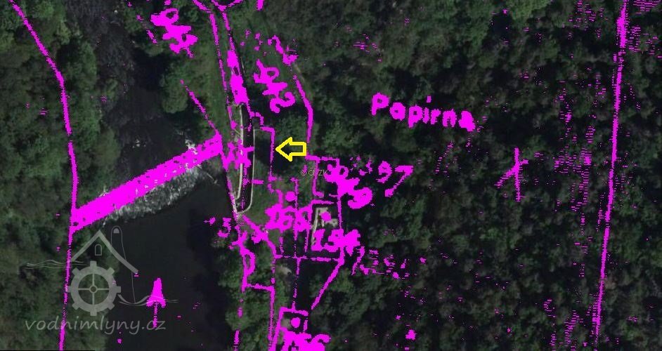 Objekty bývalého mlýna a papírny byly pobořeny začátekem 60. let 20. stol. (LR)