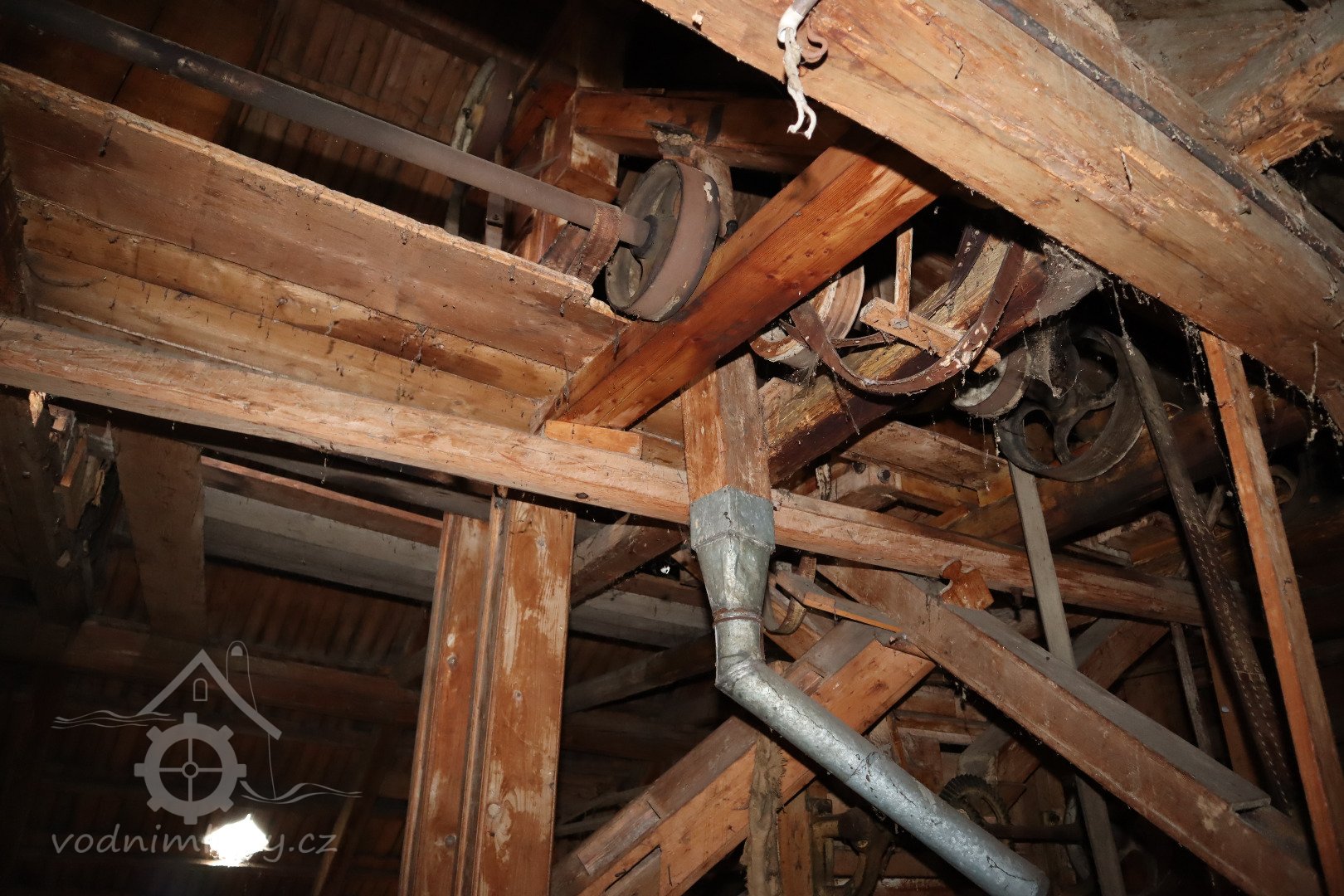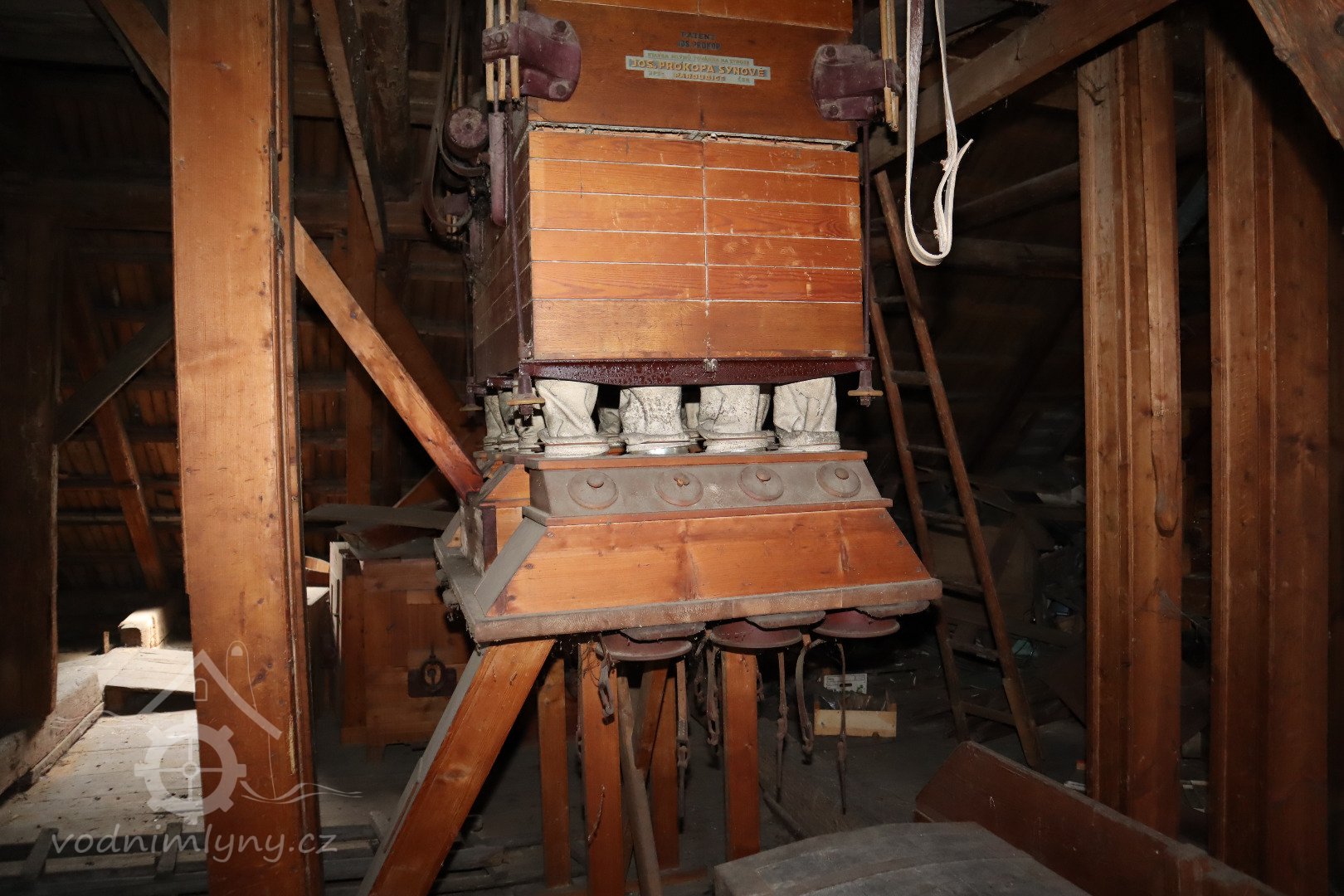 (Jelikož k pohonu by bylo třeba 8 HP, kdežto vodní kolo při efektivním spádu 3,65 m dávalo max. výkon pouze 4,38 HP, nebylo možno spouštět vše najednou.)