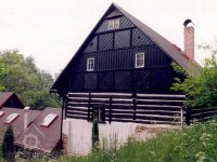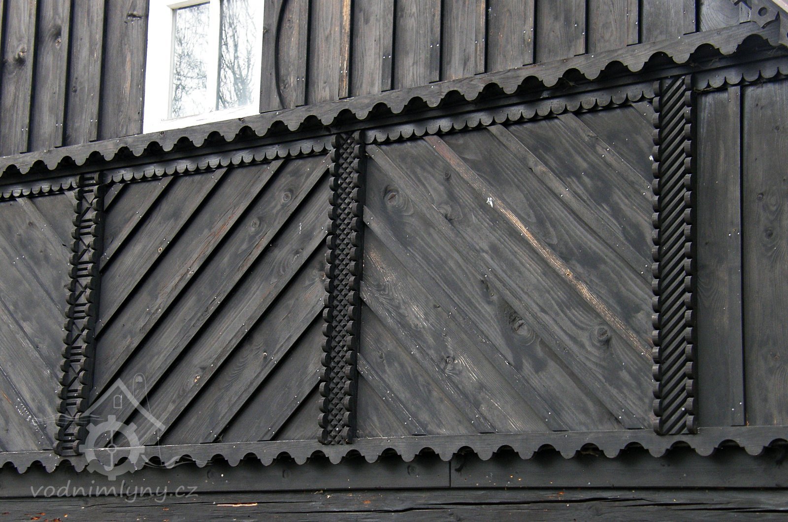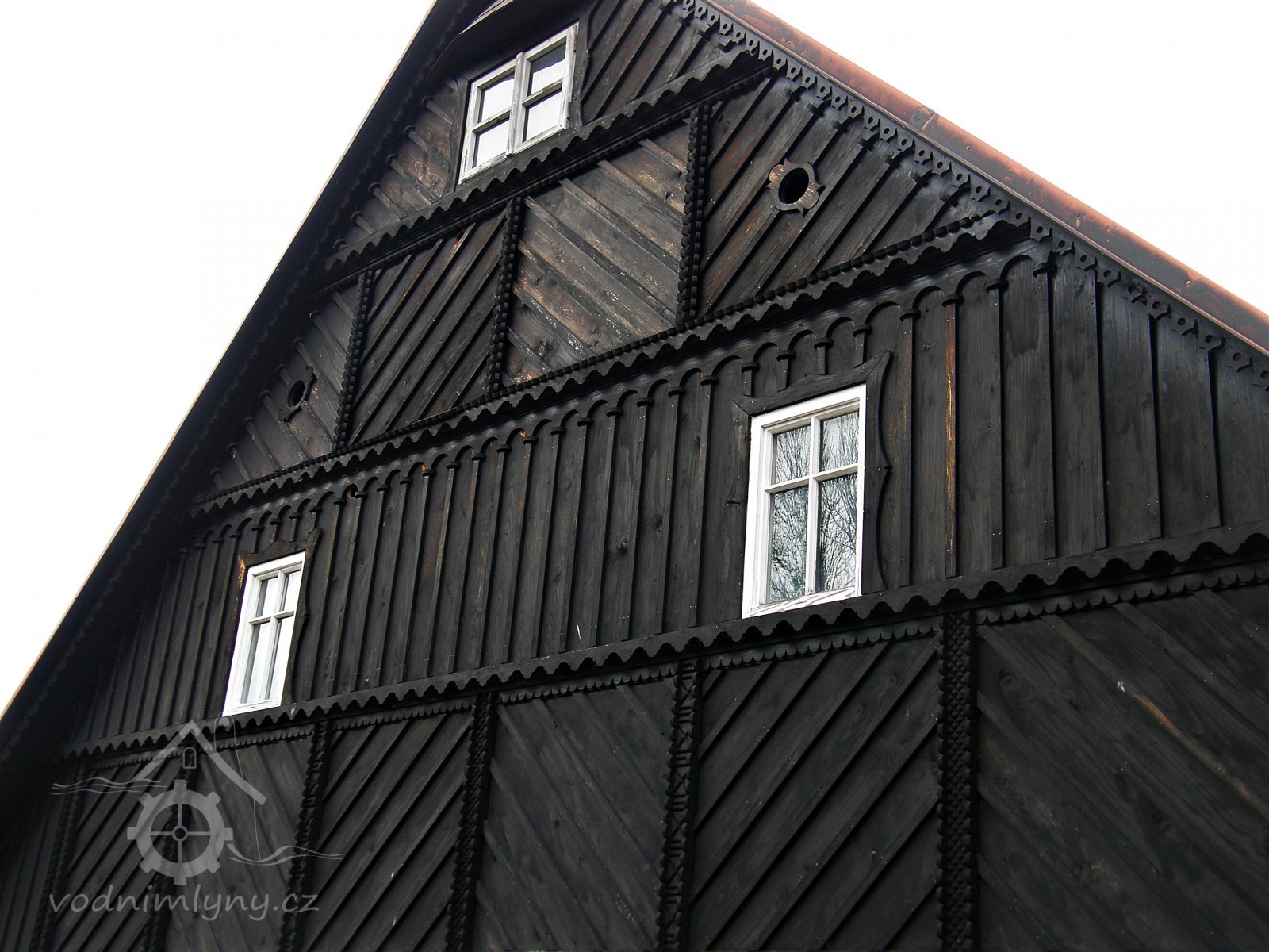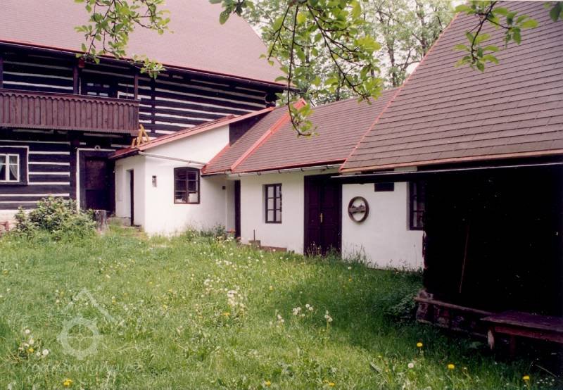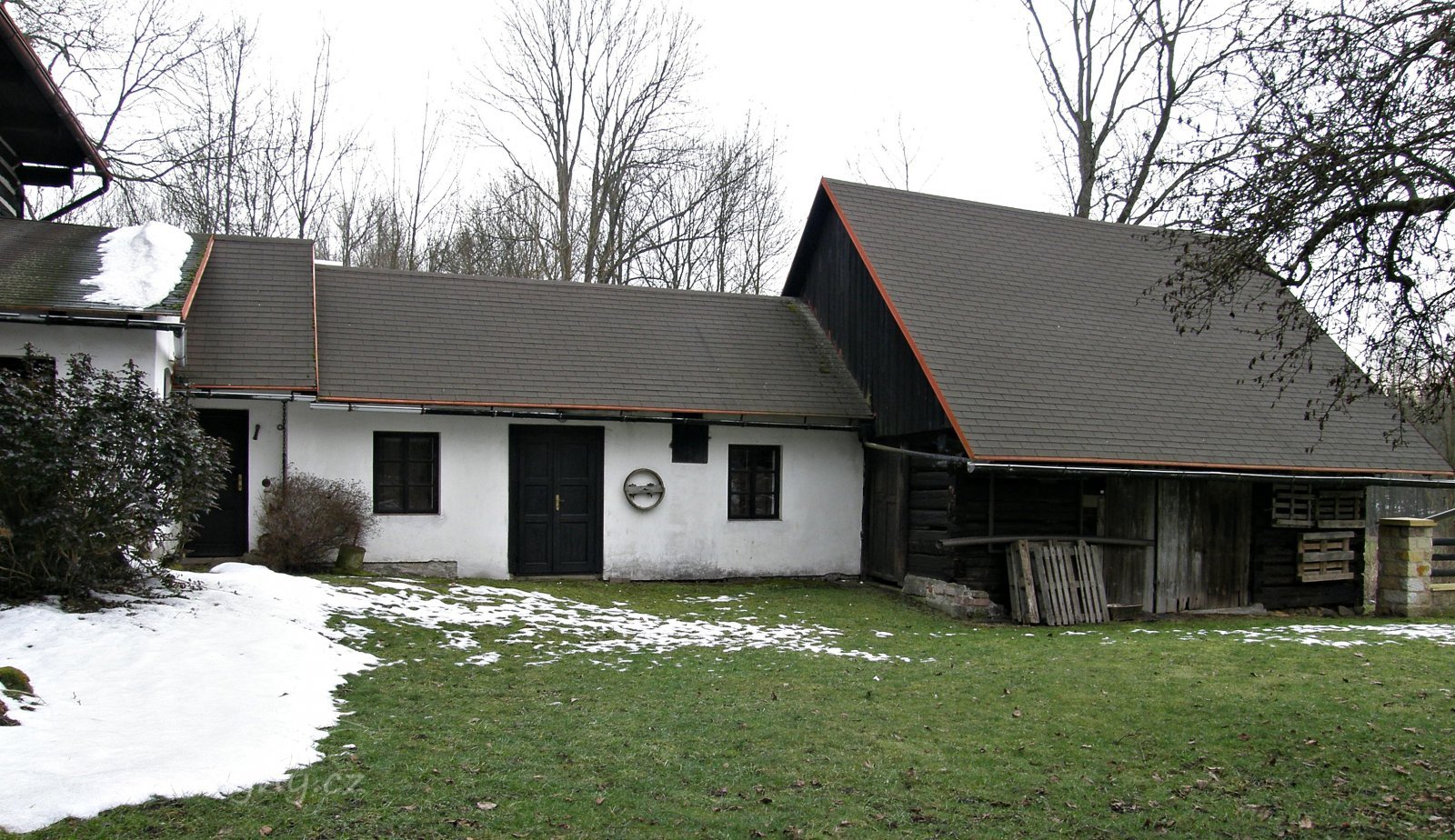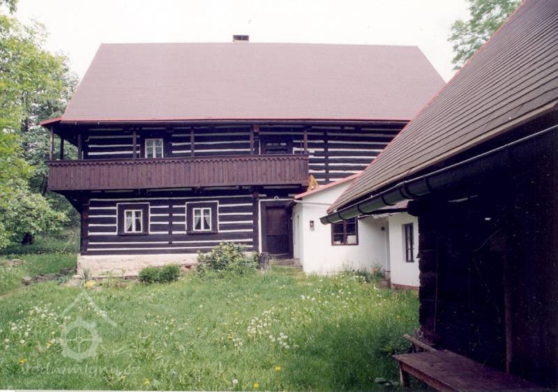 Příjezd po užší polní cestě asi 200 m od silniční komunikace. Částečně oplocen drátěným plotem s kovovými sloupky. Kolem zahrada s ovocnými stromy, studna. Jinak louky a potok. Materiál dřevěný roubený - zpevnění stěnovými kleštinami. Dispozice: štítová orientace, kolmo na zadní technický trakt přímo navazuje část hospodářská (chlévy, stodola). Typ: patrový, roubený, s pavlačí. Je to jedinečná technologická památka, protože je zde dochováno v úplnosti mlecí zařízení s mlýnicí. Vnější popis: obytná část s mlýnicí - střecha sedlová, krytina eternitové šablony, cementové tašky, roubení - původní trámy natřené na zeleno, nyní přetřeny na tmavě hnědo, olíčení spár bílé (hnědá přechází až do černa), podezdívka pískovcová pískovcová, zápraží - pískovec. Dveře - vstupní v okapové stěně: původní, dřevěné s otevíráním jedné či obou polovin, jednokřídlé, nad nimi světlík. Na pavlači jednokřídlé, dřevěné, bedněné s dřevěným ostěním a nadpražím a světlíkem - nyní upraveny na okno. Zleva od průčelí 1 dřevěné, jednokřídlé s dřevěným ostěním. Okna - ve štítovém průčelí 3 v přízemí - dvoukřídlá, s vodorovnou příčkou, dřevěnou profilovanou podokenní římsou, kolem a nad dřevěné bednění. V patře jedno jako v přízemí a jedno menší (provedením jako v přízemí). Zleva od štítového průčelí: v nahoz. podezdívce jedno okno menší dvoukřídlé, s vodorovnou příčkou, 3 obdélníkovité průduchy. Zprava v okapové stěně 3 okna jako ve štítové stěně v přízemí, z toho jedno okno v patře, v zadní štítové stěně v roubené mlýnici jedno okno velké dvoukřídlé bez příček. Štít (lomenice) průčelní: celý obložen eternitovými šablonami, natřenými na tmavě hnědo, kolem oken do čtverce obloženy šablony a natřeny na bílo, původní lomenice pravděpodobně dvoupásová. Jehlancový kabřinec pokryt trojúhelníkovými šablonami. Zadní štít: eternitové šablony rozděleny do 3 polí - horní z menších - růžové, ve spodním poli 2 okénka obdélníkovitá, položena na délku a rozdělena svislými příčkami do 3 tabulek + obložení šedými šablonami. Chlévy - stodola: V jedné ose za sebou, navazují na sebe. Sedlové střechy s krytinou - červené pálené tašky, cementové tašky a opět na stodole červené pálené tašky. Objekty zděné cihlami a částečně použit pískovec, stodola roubená. Okna: 1 dvoukřídlé s dvěma vodorovnými příčkami a v horní části zaoblené, 1 okno dvoukřídlé se dvěma vodorovnými příčkami, 1 menší okénko železné rozdělené do 9 polí a v horní části zaoblené. Dveře - 1 dřevěné jednokřídlé s vnitřní profilací do 5 obdélníků, 1 dveře dvoukřídlé s obdélníkovou profilací a dřevěným bedněním, u stodoly bedněná vrata a 1 bedněné jednokřídlé dveře. Pavlač - pouze z okapové vstupní strany; dřevěná, svisle bedněná na krakorcích, v bednění ozdobné průřezy, 3 sloupky. Ke štítovému průčelí bedněná až ke střeše.