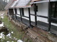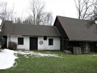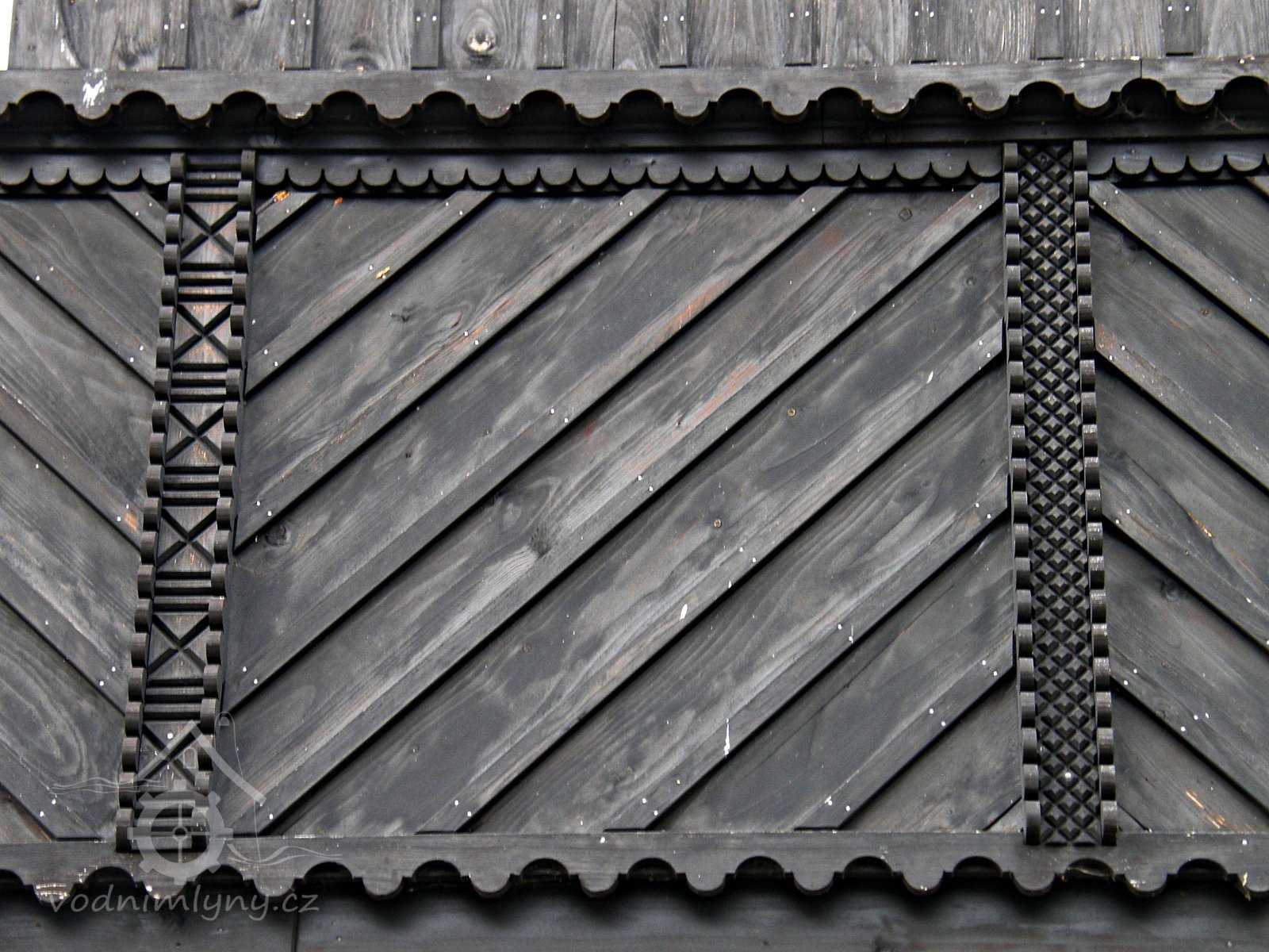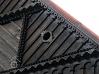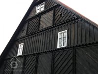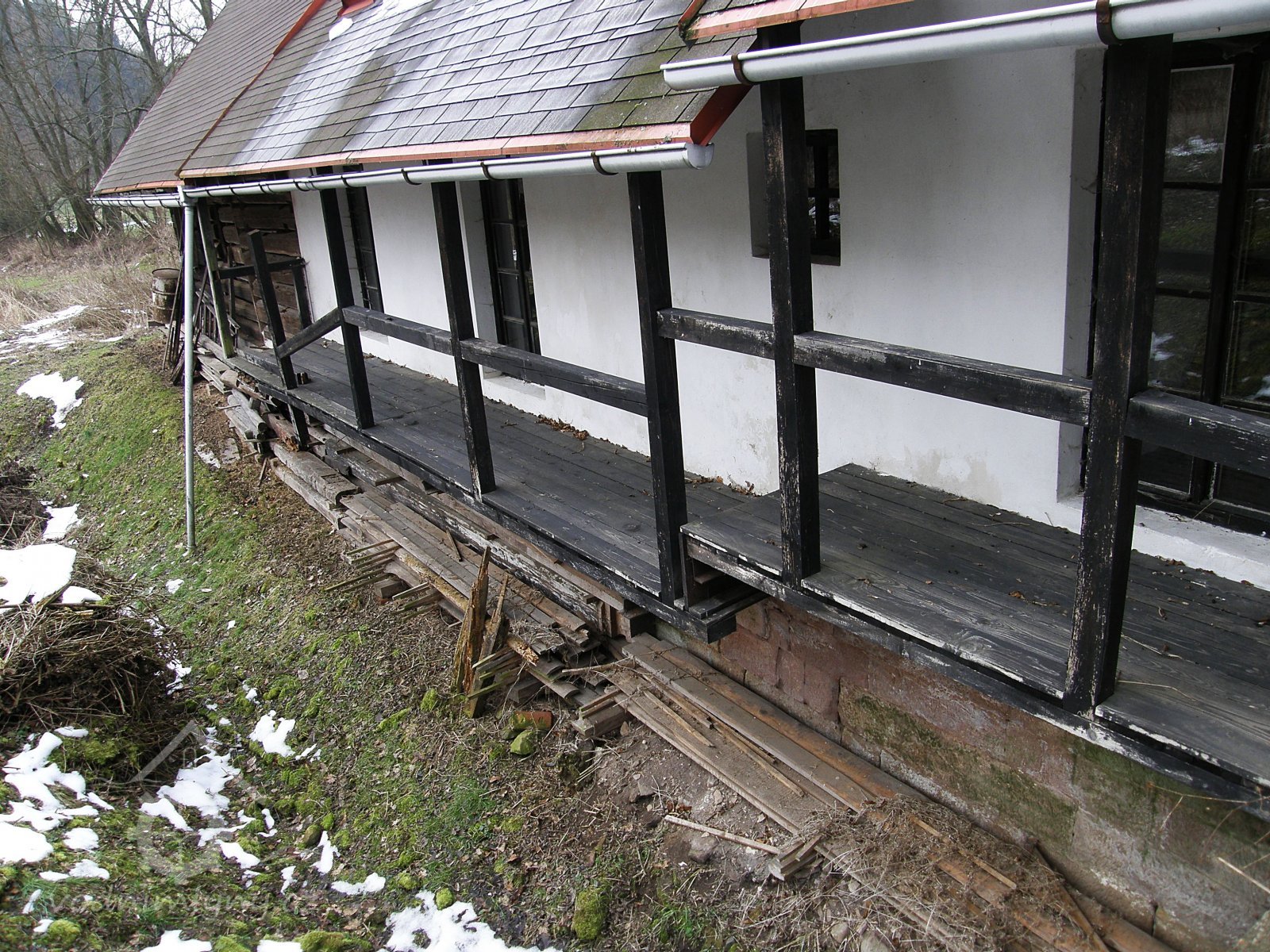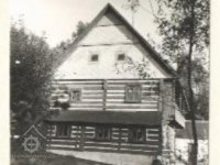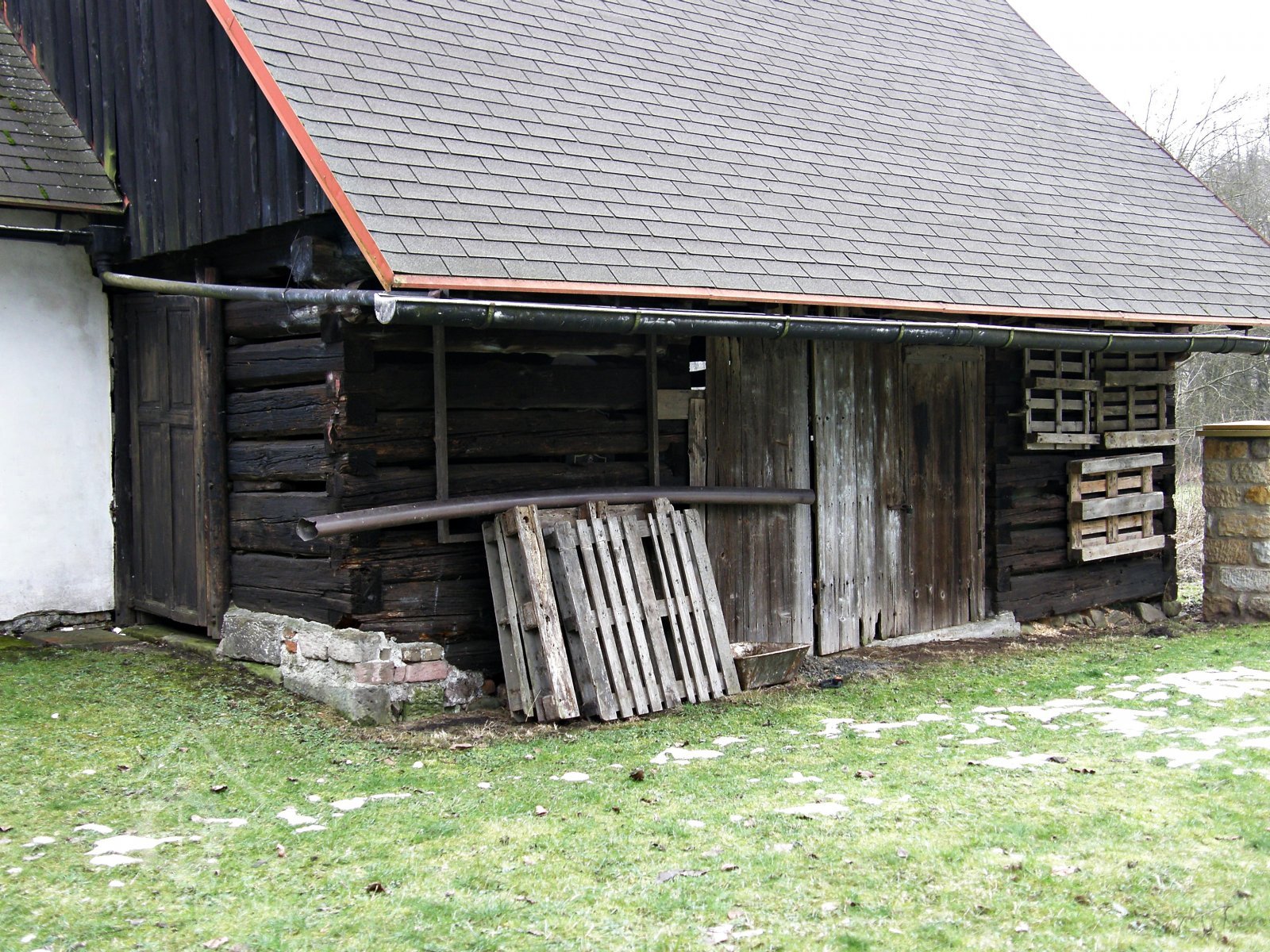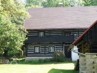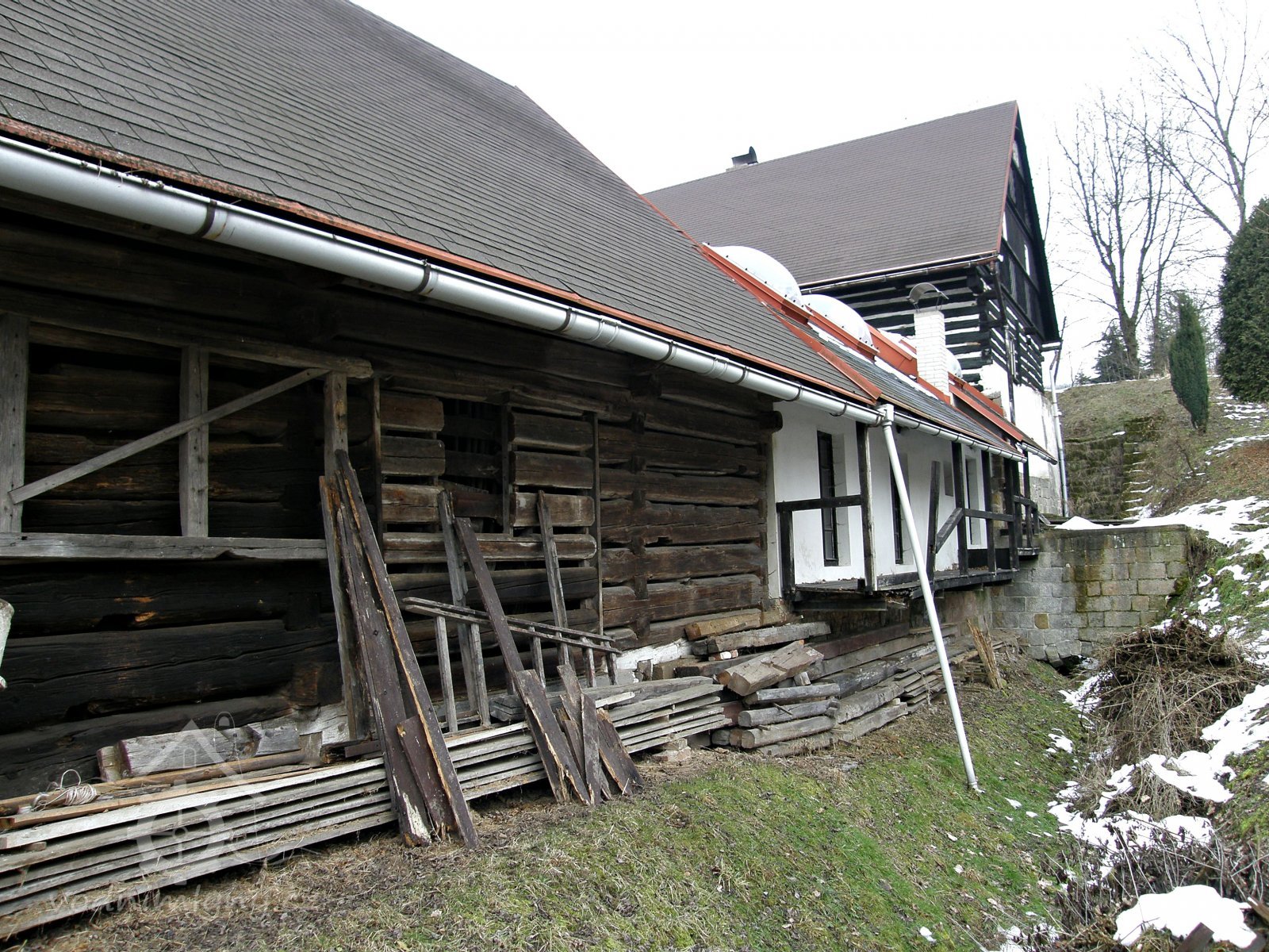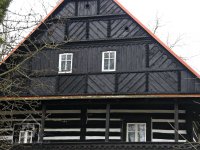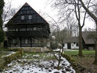 Roubená stavba s pavlačí a bohatě vyřezávanou lomenicí.
