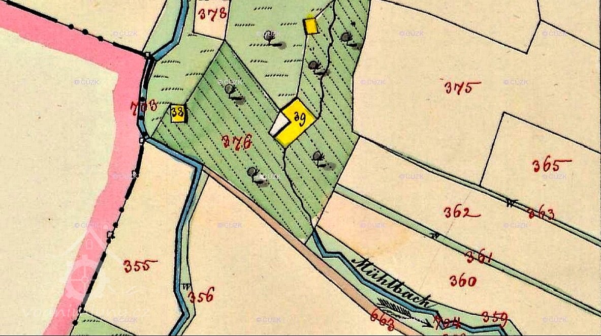 1814 Jan Erlebach a Anna mlýn za 2800 zl., emf. pole200 zl.
