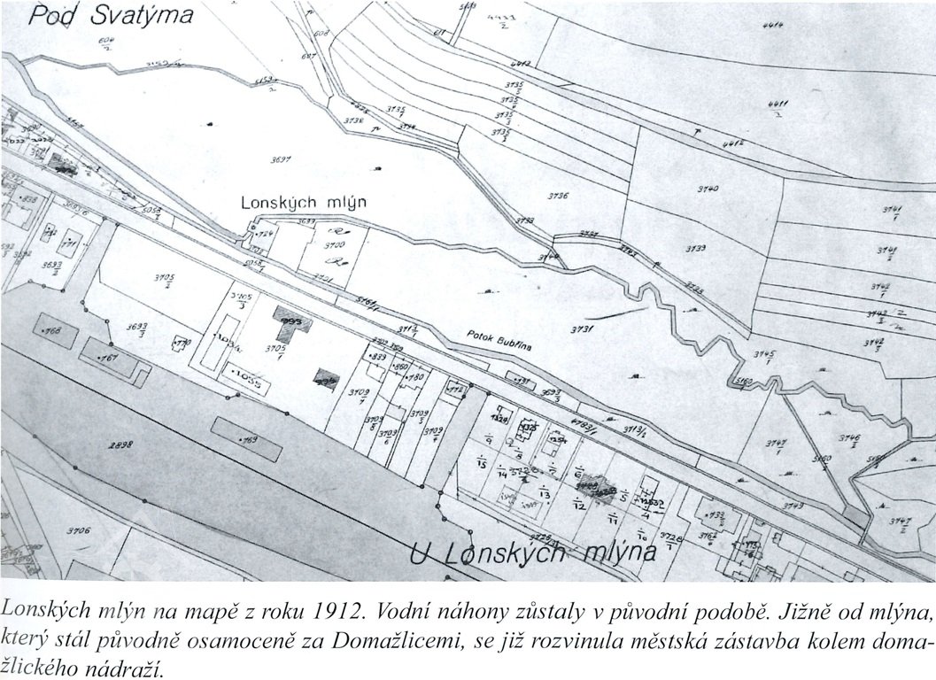 První zmínka pochází opět jako u většiny ostatních domažlických mlýnů z roku 1561, mlýn tehdy patřil měšťanu a radnímu Václavu Lepenému.