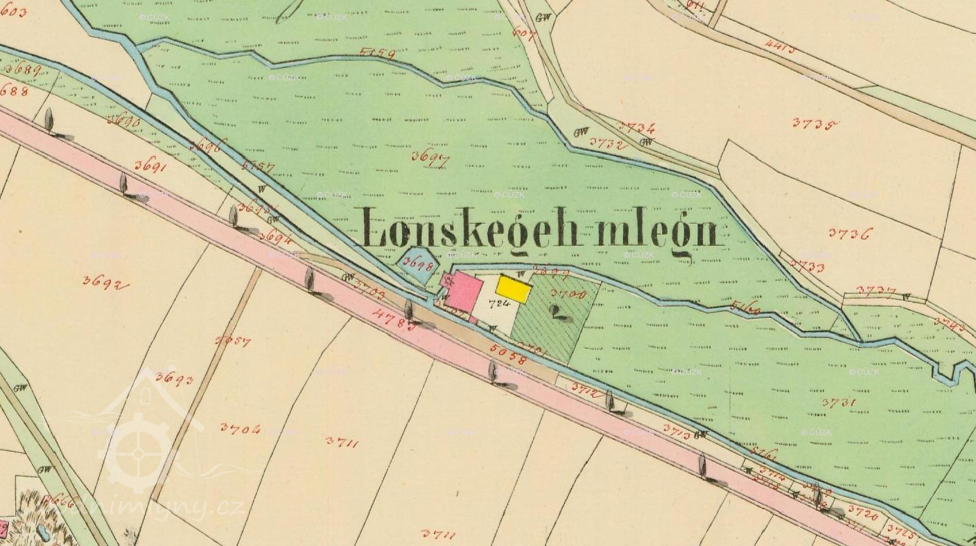 Roku 1641 kupuje značně zchátralý mlýn Adam Lounský, od té doby nesl mlýn název Lounských či Lonských až do svého zániku. Musel ještě splatit 600 kop grošů dědického podílu Pranejsově dceři Alžbětě.
