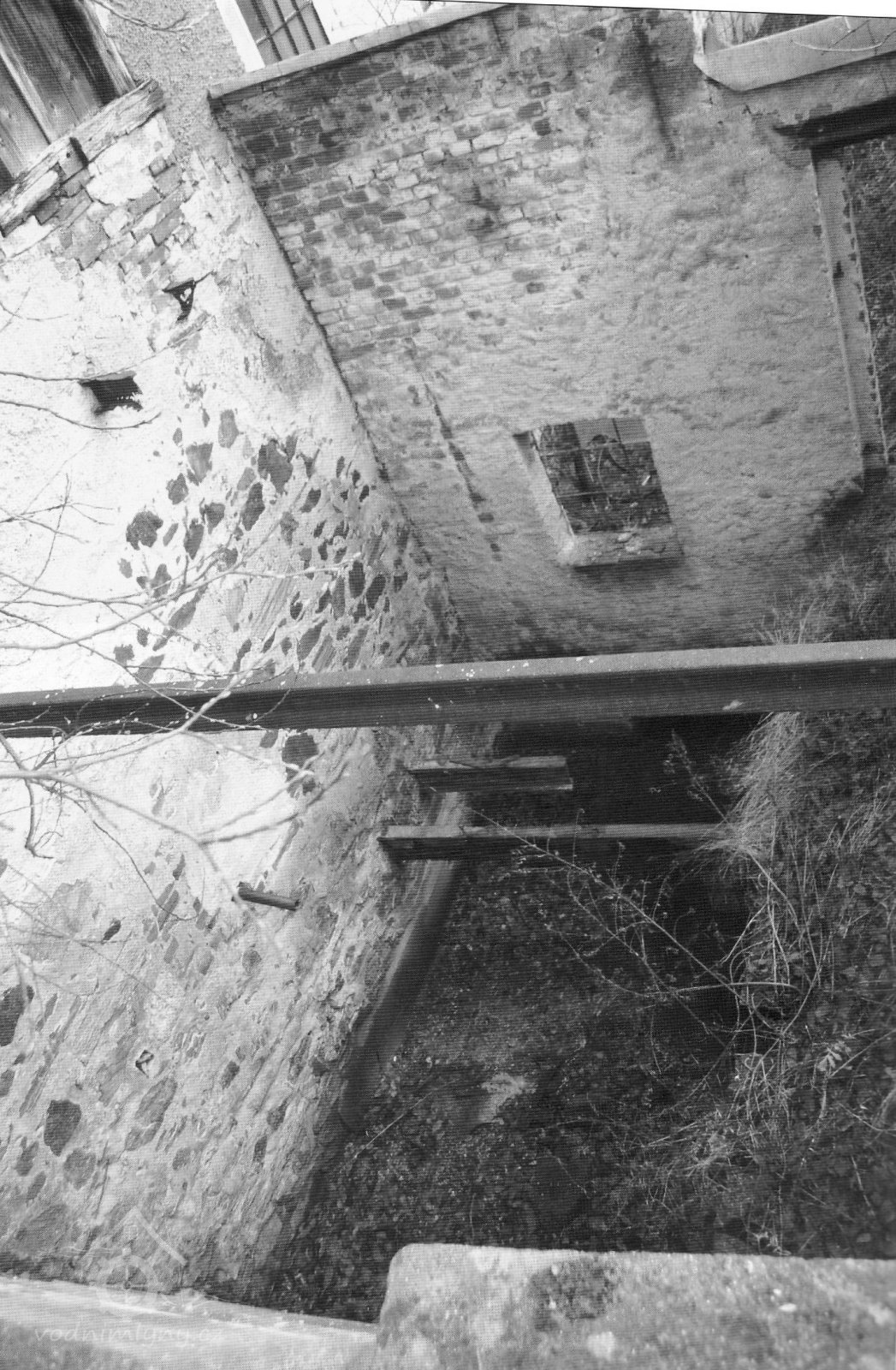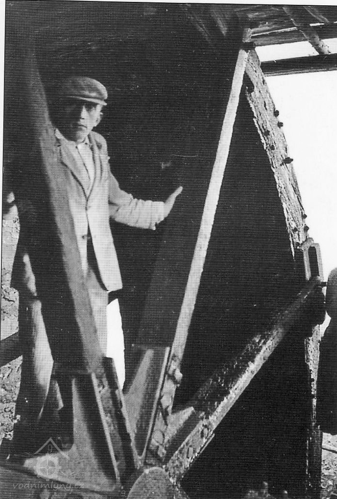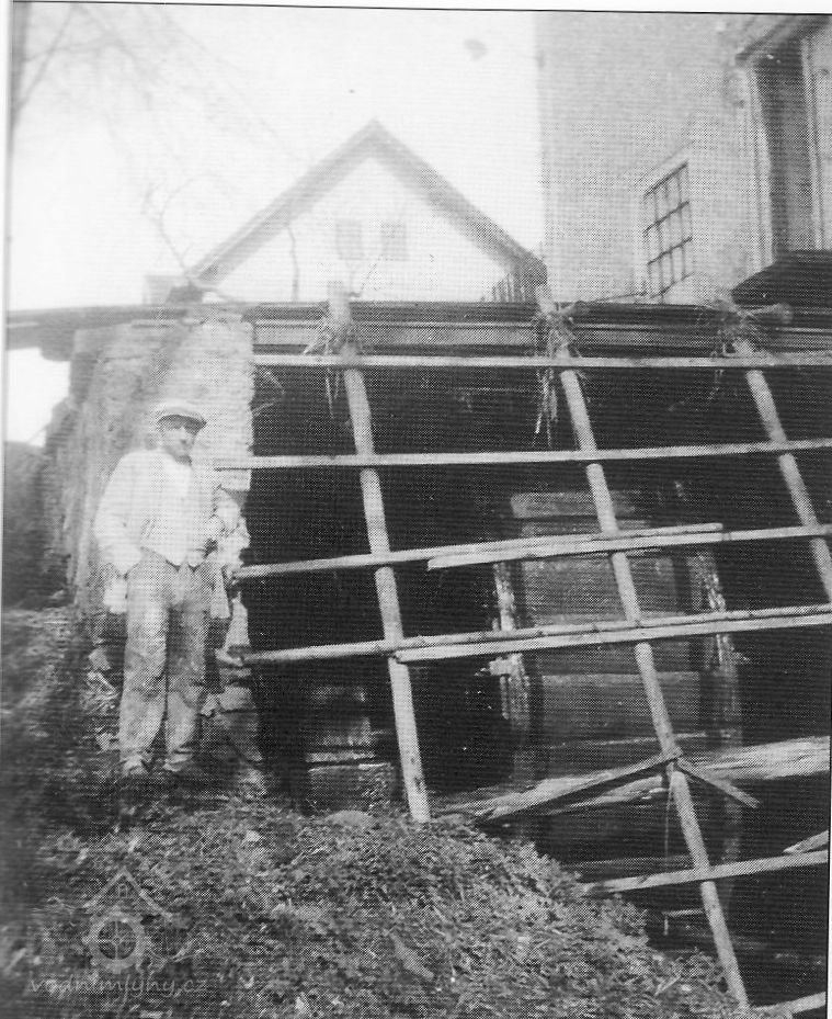 1878: z krytých dřevěných vantrok dlouhých 5,65 m odtékala voda žlabem po pravé straně na korečkové kolo, levý žlab přiváděl vodu na druhé korečkové kolo