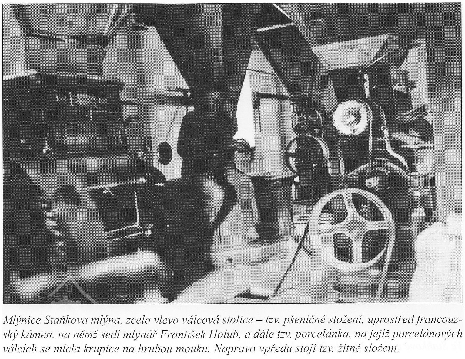 1937: mlecí kámen prům 1,1 m, 1 dvojitá stolice s ocelovými válci, loupačka, 2 hranolové vysévače, míchačka, čisticí zařízení, výtahy