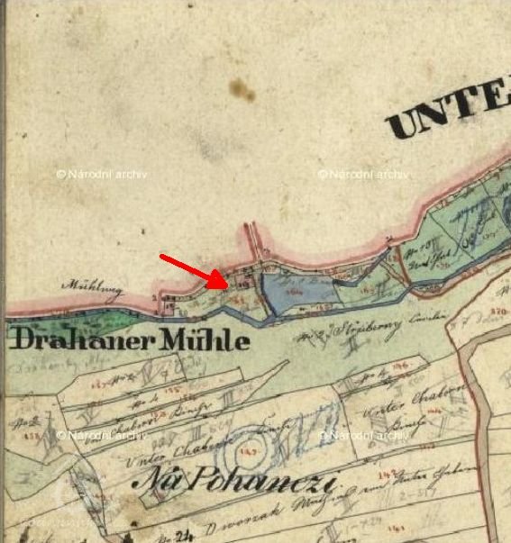 "Prodáno jest jedno místo pode vsí Dolní Chabry pod lukama panskýma. kde někdy předešle mlýn stával, tak jak podne grunty a zdi se spatřují, Tomášovi Kocourkovi, řemesla mlynářského, by na místě mlejn postavil. Za to 60 zl. povinen dáti bude."
