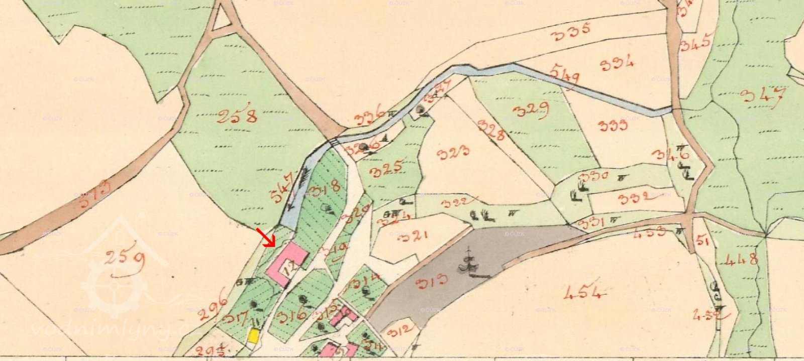 Patrné zbytky náhonu, dochoval se malý rybníček.