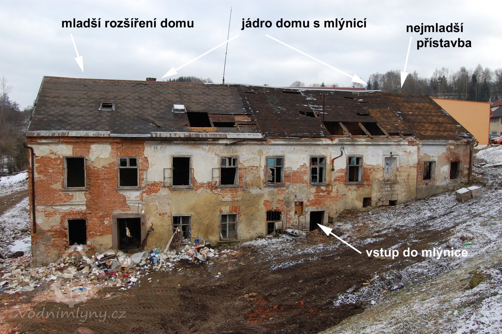 mlýnice a dům pod jednou střechou, avšak dispozičně oddělené