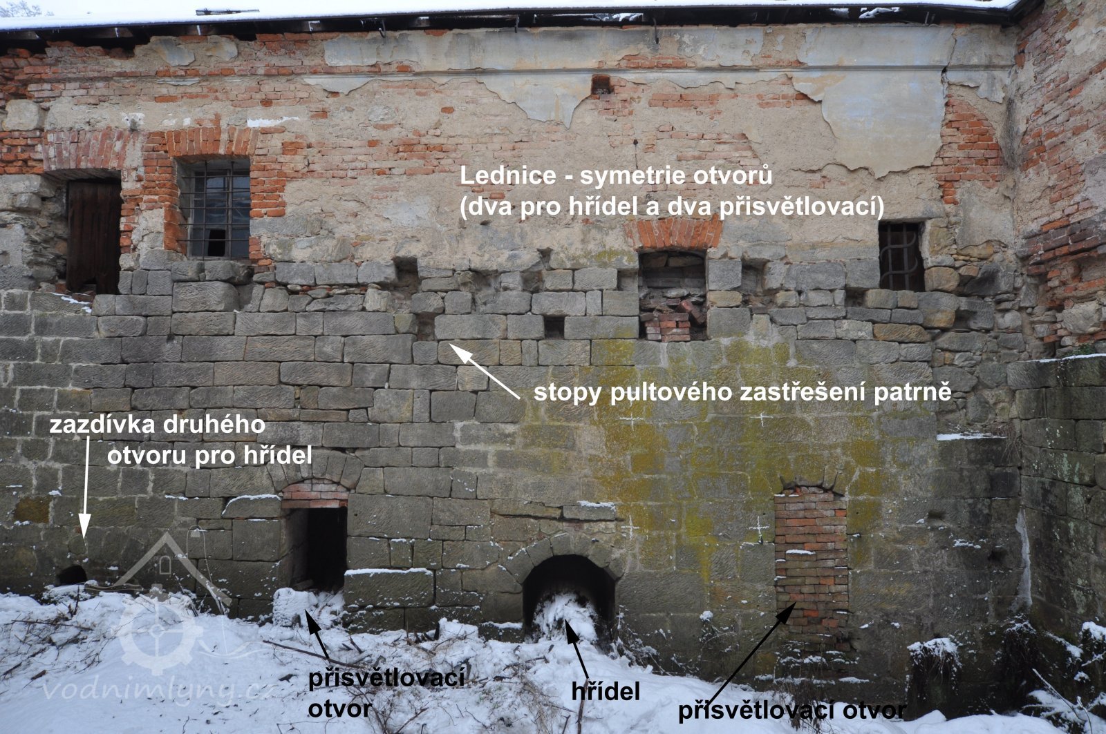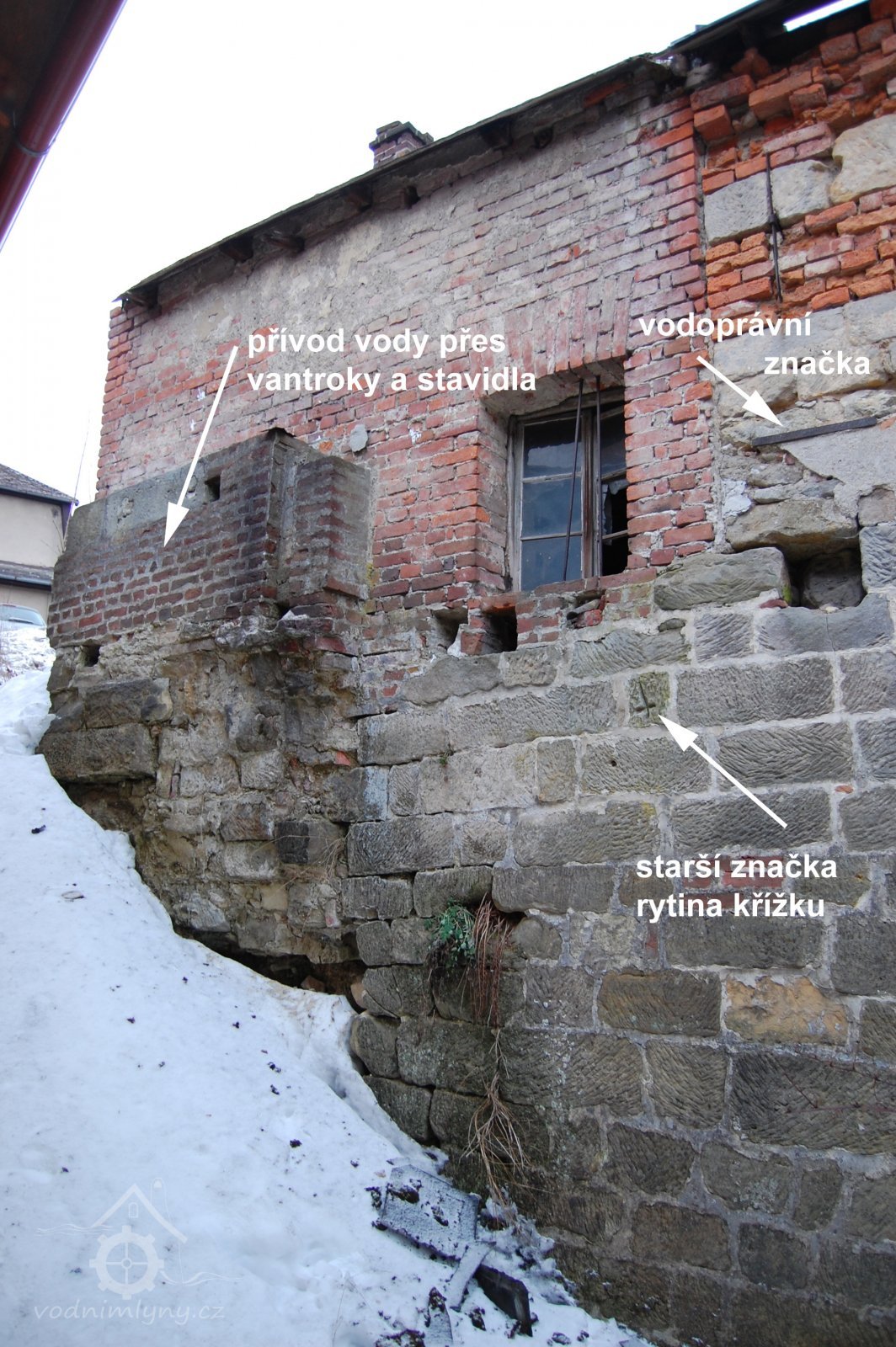 • prostup pro hřídel vodního kola