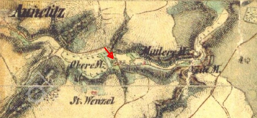 Na II. vojenském mapování je zakreslen jako Obere Mühle - Horní mlýn