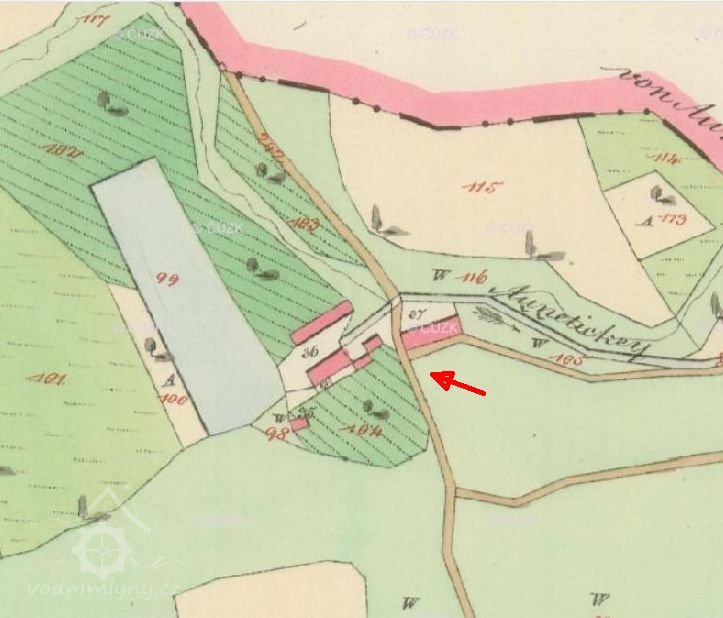 1764 v pozemkové knize dva mlýny - Hořejší (čp. 16) a Dolejší (čp. 17)