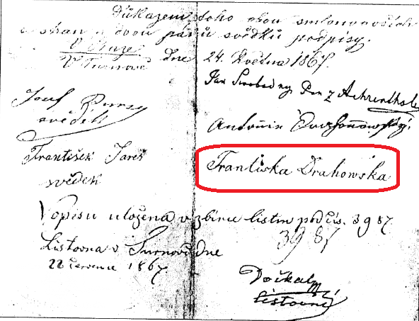 1870 Ant. Drahoňovský zemřel, mlýn nadále vede vdova Františka Drahoňovská