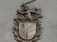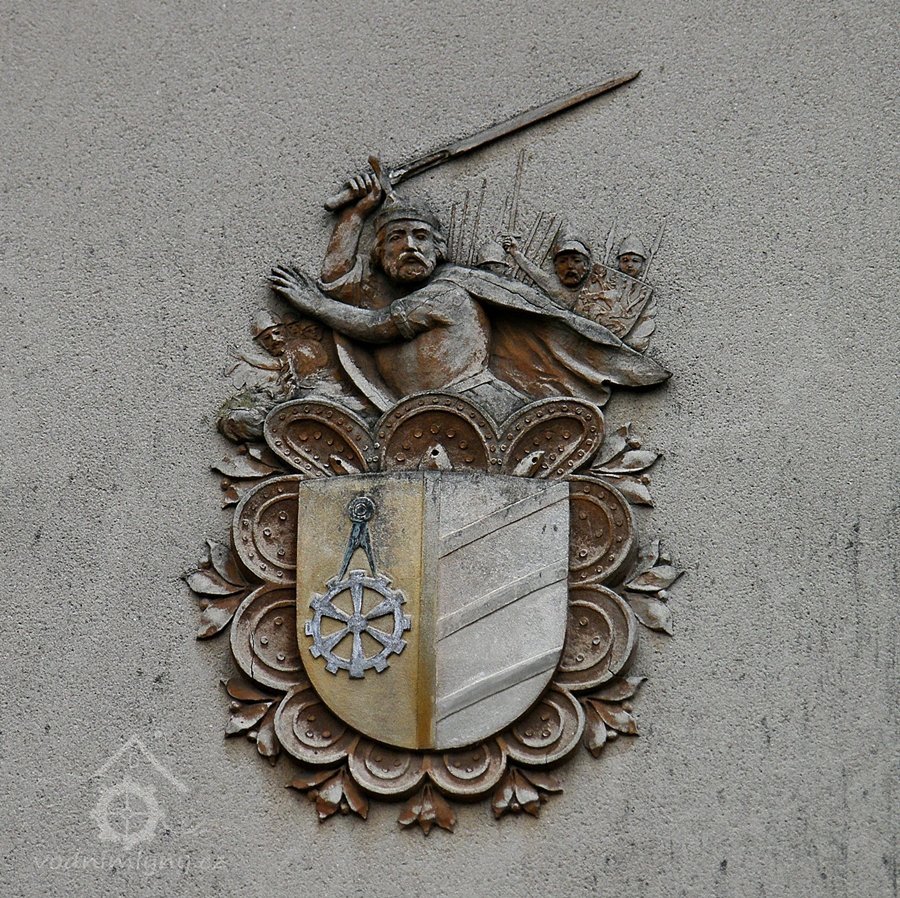 Komplex mlýnských budov s umělecky ztvárněným mlynářským znakem v průčelí mlýna.