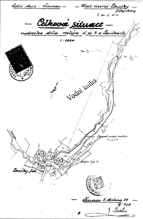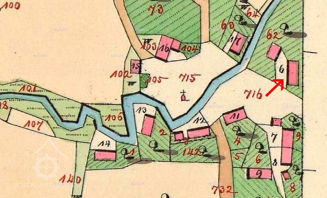 Popis1928: 1 vodní kolo, spád 6,36 m, hltnost 0,082 m3/s, výkon 2,6 HP