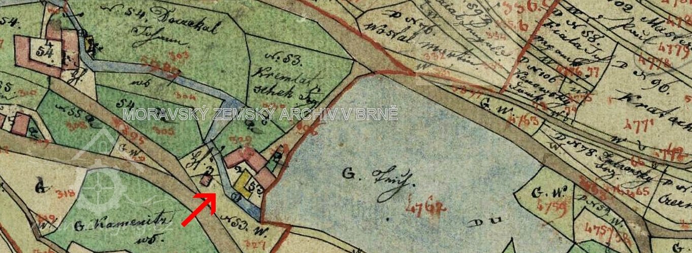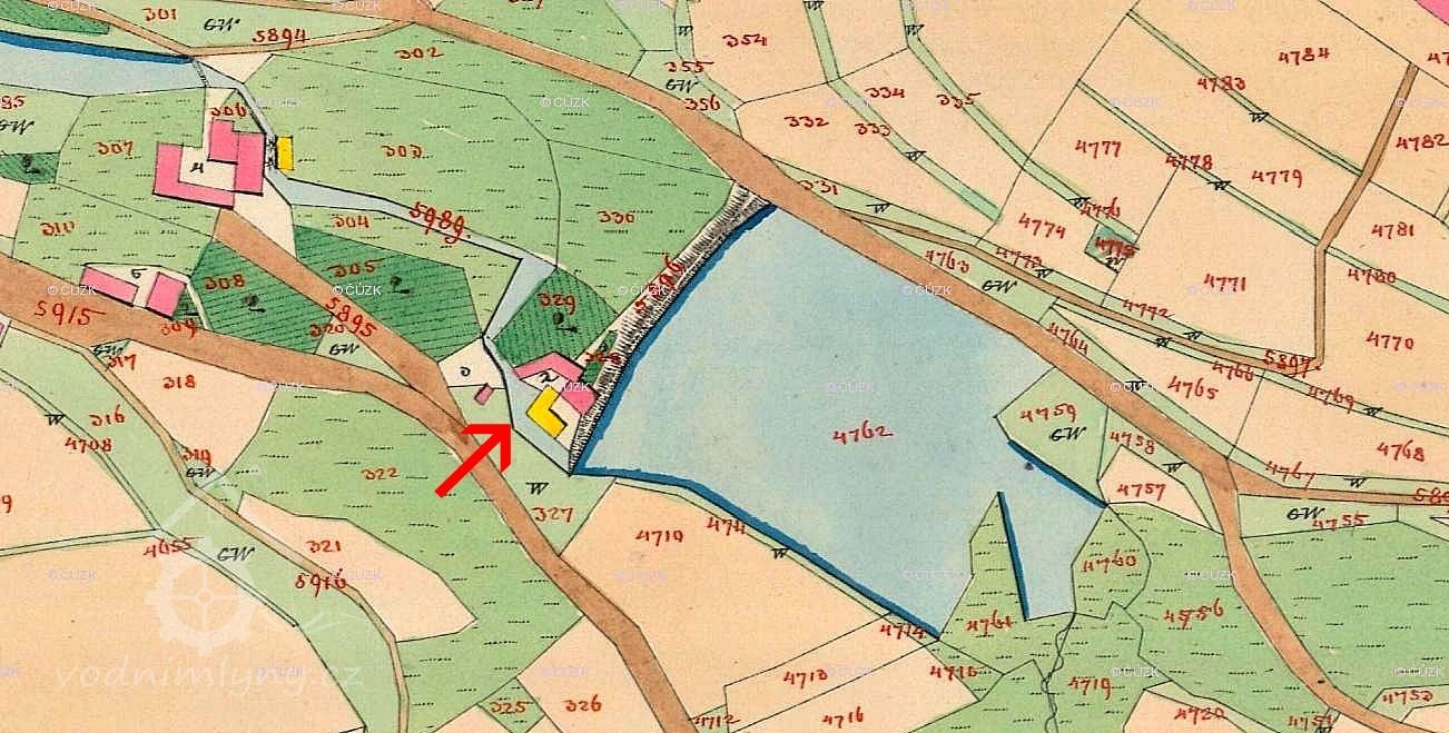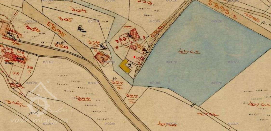 PopisV roce 1930 pohání mlýn kolo na svrchní vodu s průtokem 0.213 m3/s, spádem 4 m o výkonu 7.38 HP.