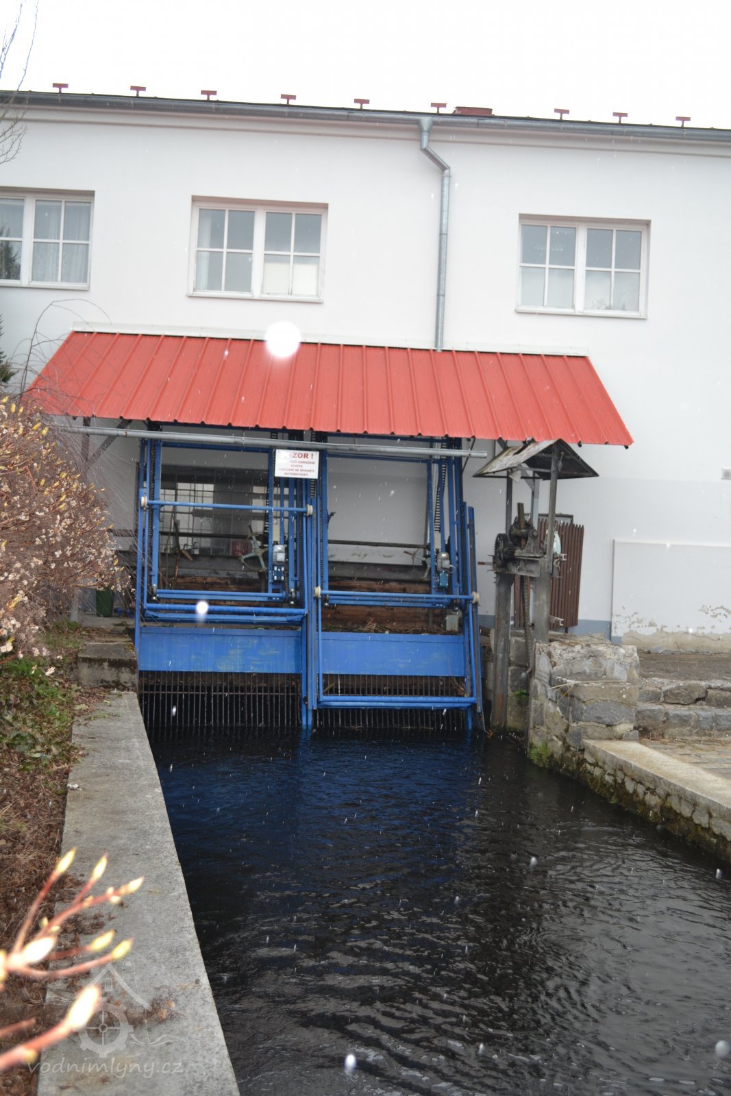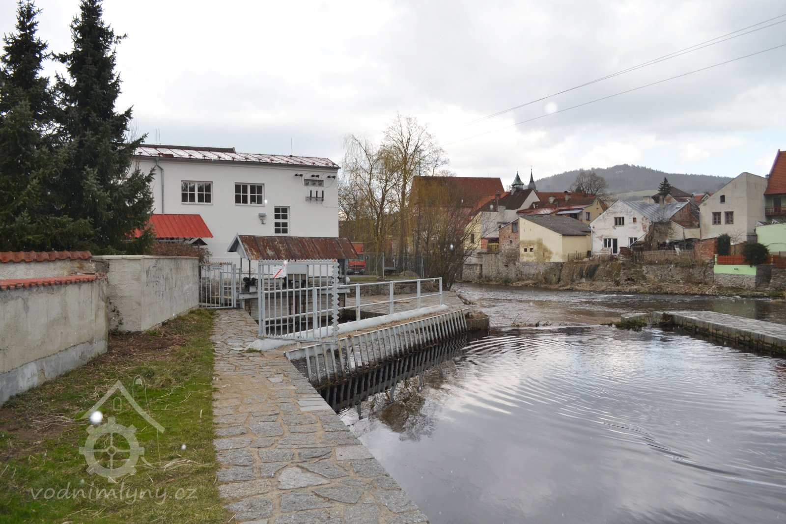 Mlýn s turbínou, který vyrábí elektřinu a mele