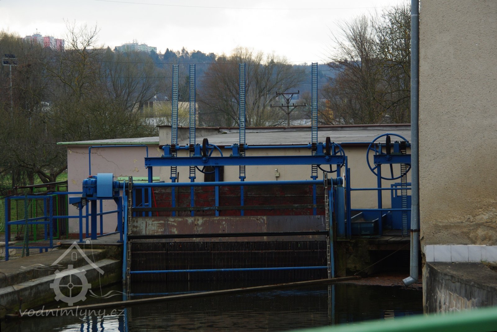 Na pravém břehu proti mlýnu u cesty stála "dolní stodola" se šupnou na dříví, kdysi hlavně účelům mlýnským sloužící. Do r. 1884 byl totiž mlýn poháněn vodními koly. Též některé stroje byly v podstatě ze dřeva. Výrobou dřevěných součástí zabývali se v tehdejších mlýnech sekerníci, tesaři i opravovali stroje, stavidla a splavy (jezy).