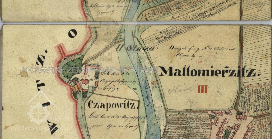 Je skutečně zajímavé počítati na hrubých, věky sešlých blanách šedivého papíru, co vše se k takovému starému jezu poutá. Písmo brkem psané, ztrnulé, tak jako celý ten sloh, v němž listiny psány. Jsou tam s akuratesou a svědomitostí, zašlých časům a jejich lidem vlastní, do nejmenších podrobností vytčeny různépovinnosti a závazky mlynářů cacovských a robotníků, usedlíků to okolních obcí Husovic, Obřan, Maloměřic, všeliké malicherné i vážné spory mezi vrchností, neb počestným cechem brněnských soukeníků, neb správcem panského dvoru s majitelem mlýna.