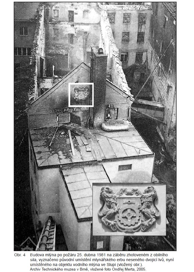 Erb, který byl umístěn na štítu mlýna, je po úpravách umístěn na mlýně ve Slupi.\n