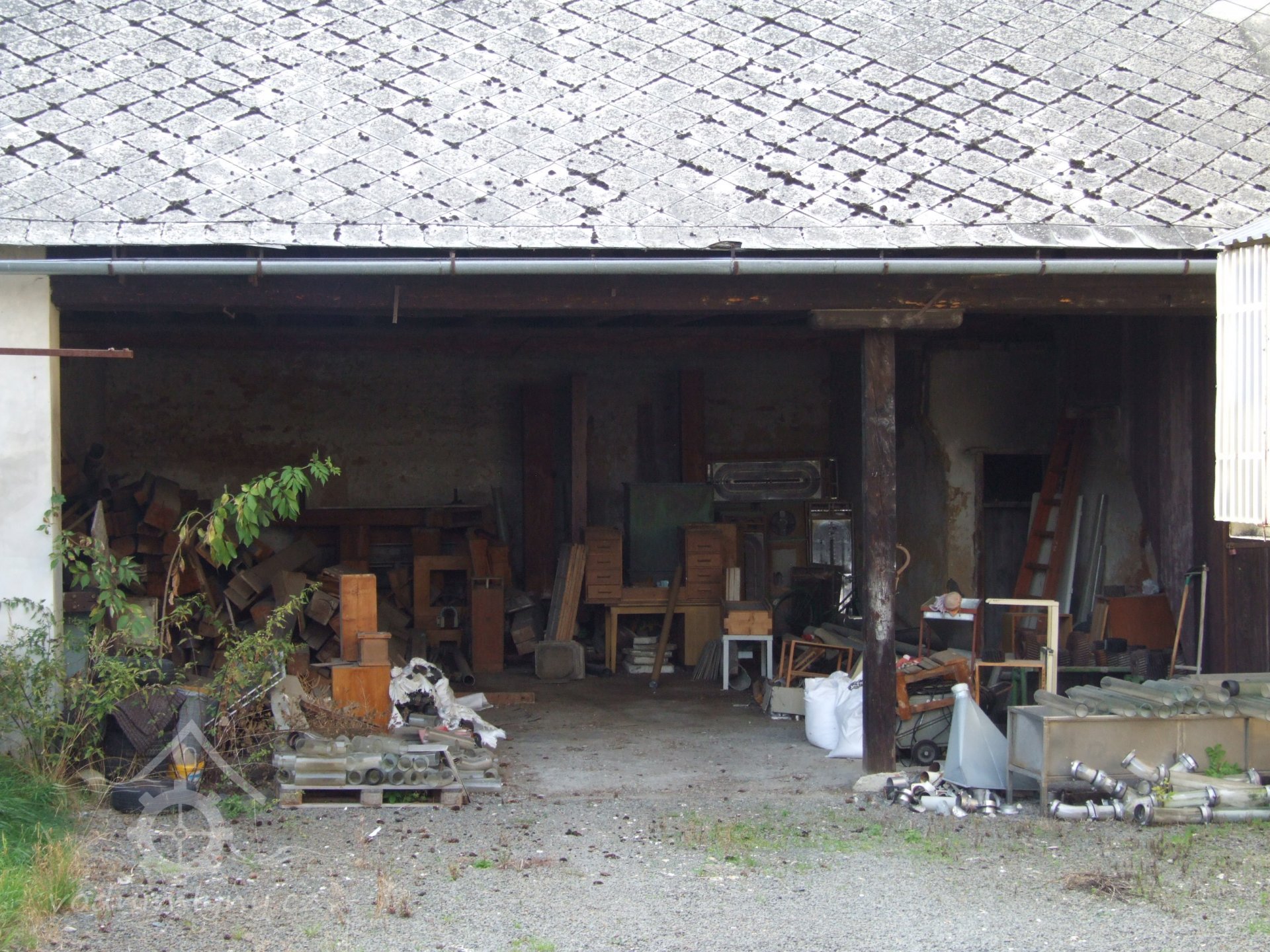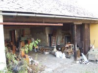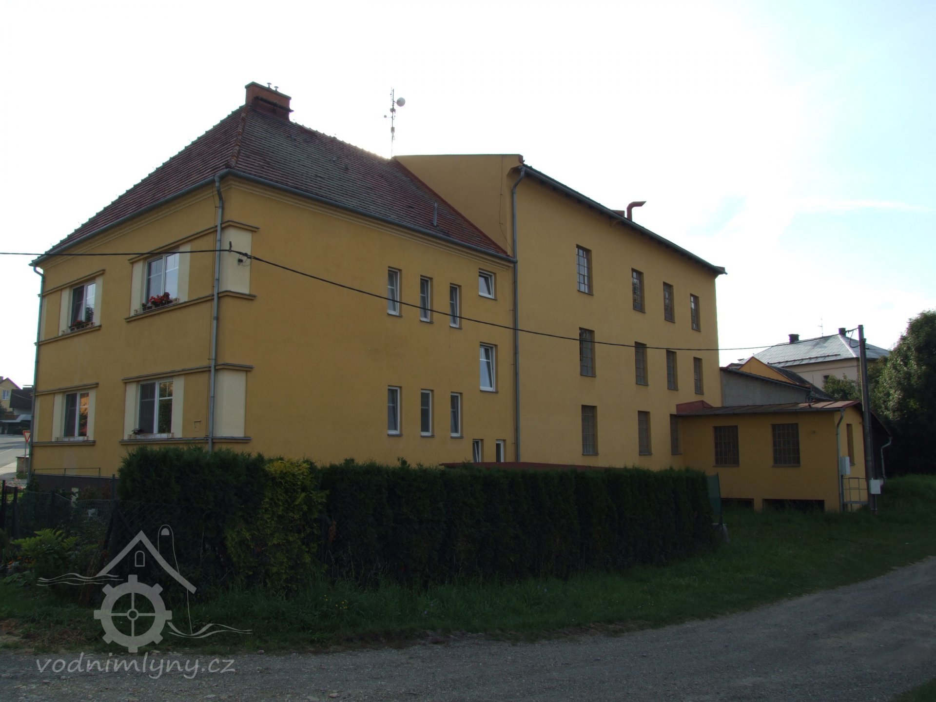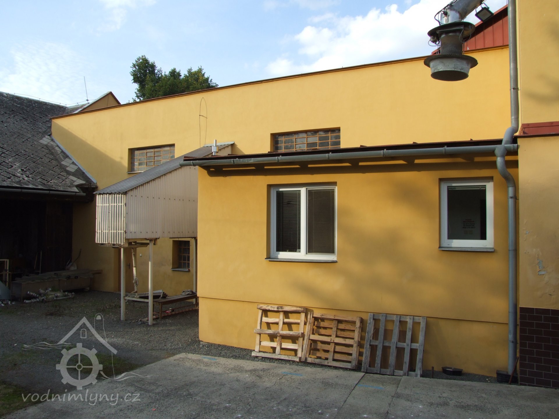 Mlýn Na Závodí č.p. 105, Holasovice – návodní strana turbínového domku, červen 2023, © Jiří Hořák, (Prvky na obrázku: Turbína)