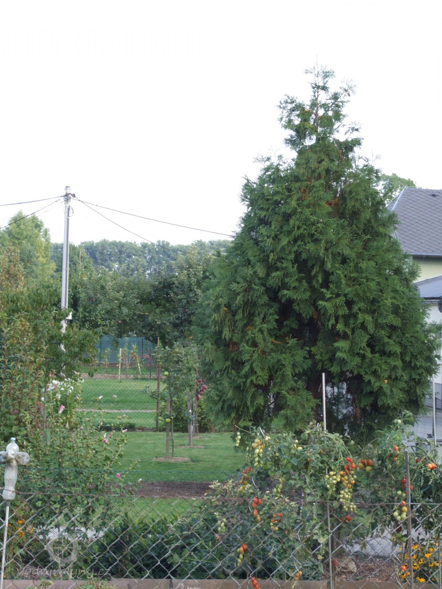 Mlýn Na Závodí č.p. 105, Holasovice – vodní právo: již definitivně spodní mlýnská strouha za mlýnem Na Závodí, Vesnickým, Dolním mlýnem už po vodohospodářských úpravách v obci není na povrchu patrná, v tomto místě je již zatrubněná, ale vedla takto rovně (fotografováno po vodě), září 2021, © Jiří Hořák, (Prvky na obrázku: odtokový kanál)