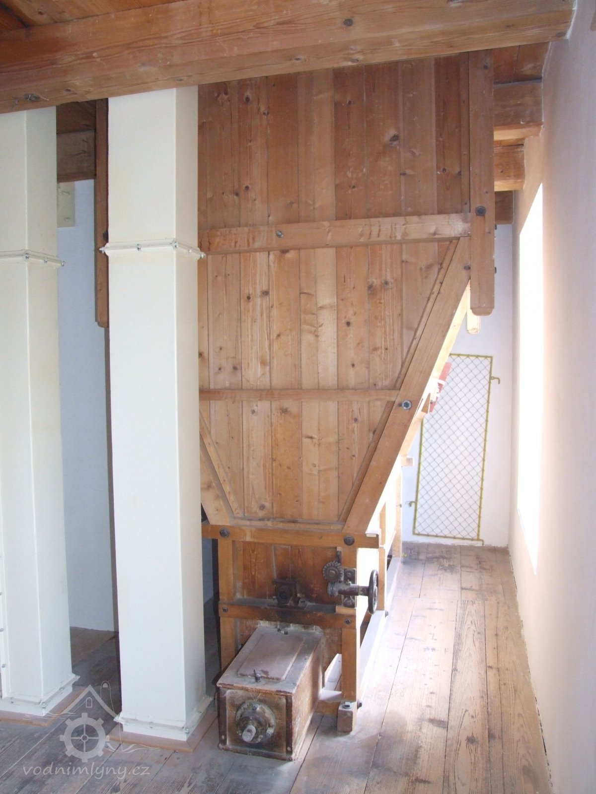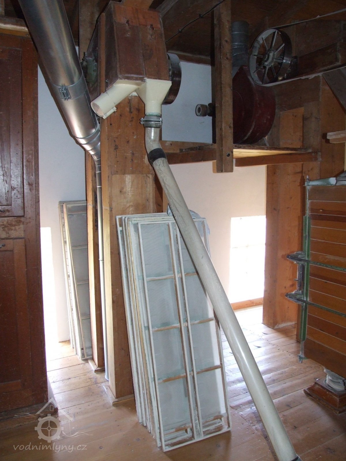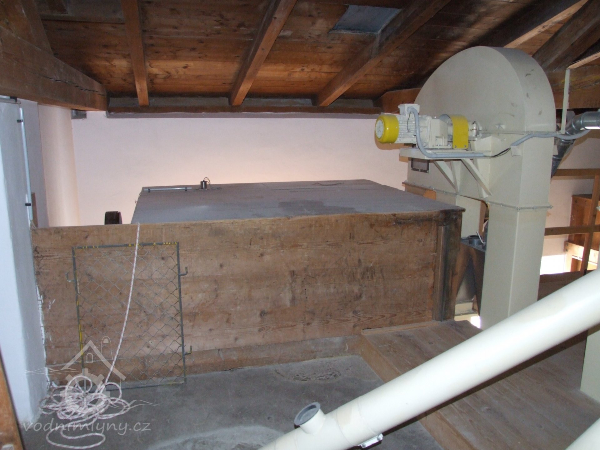 Mlýn Na Závodí č.p. 105, Holasovice – podstřeší: původní aspiratér ("tarár"), červen 2023, © Jiří Hořák, (Prvky na obrázku: aspiratér)