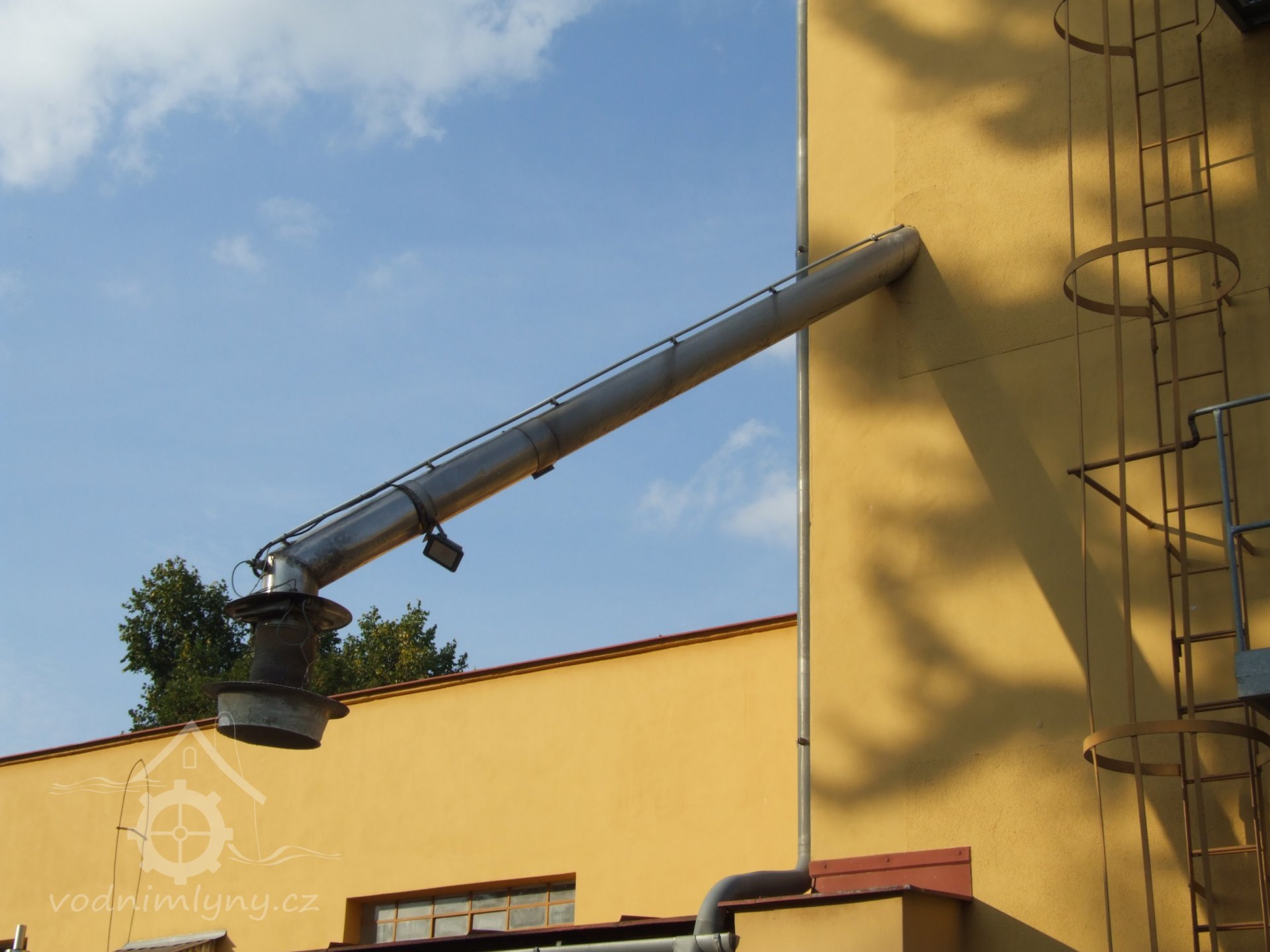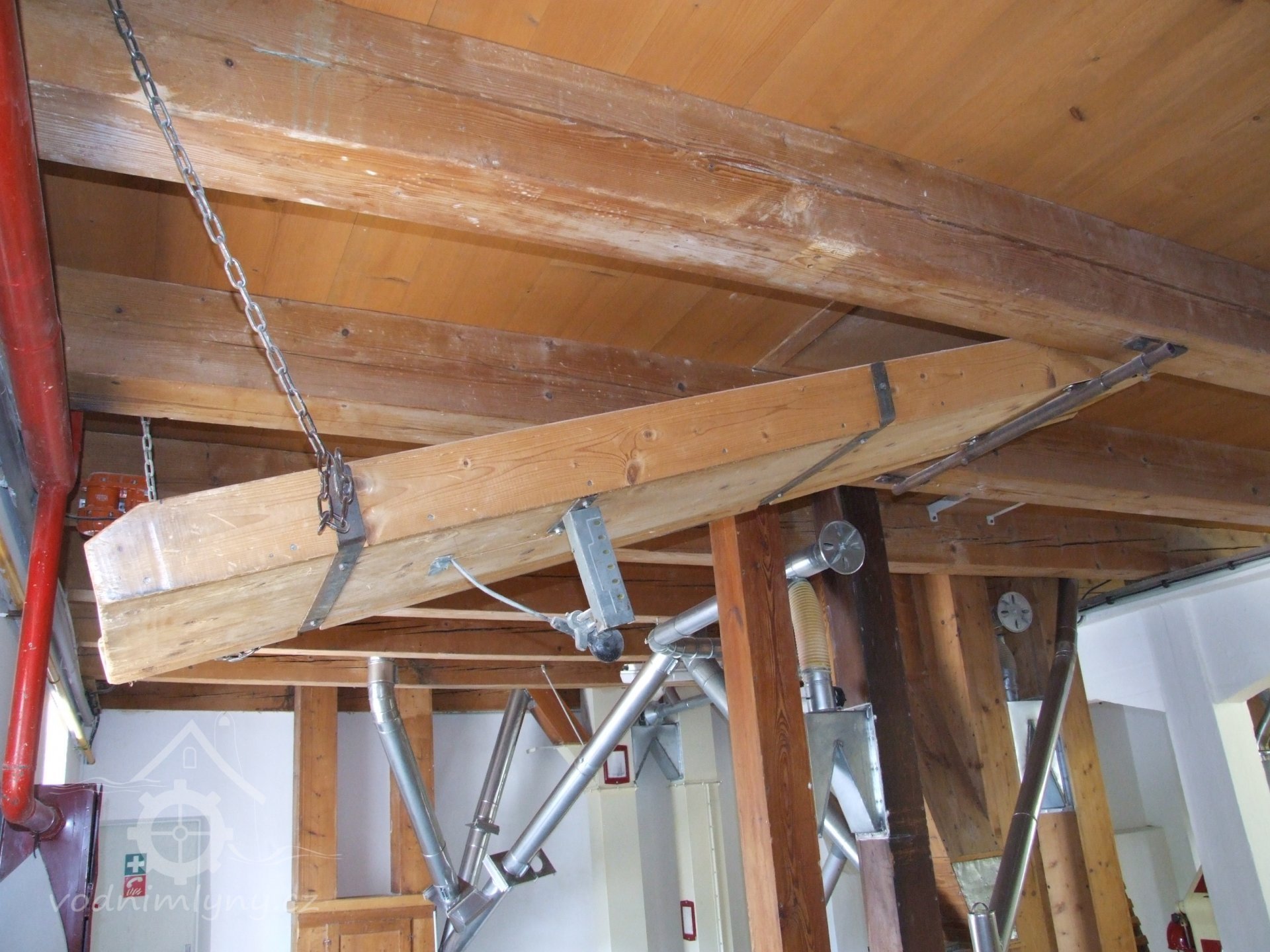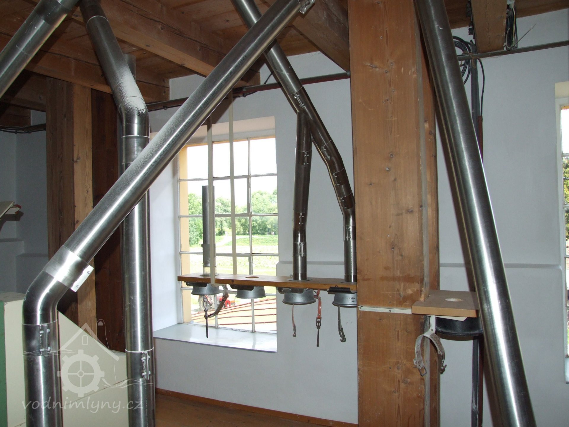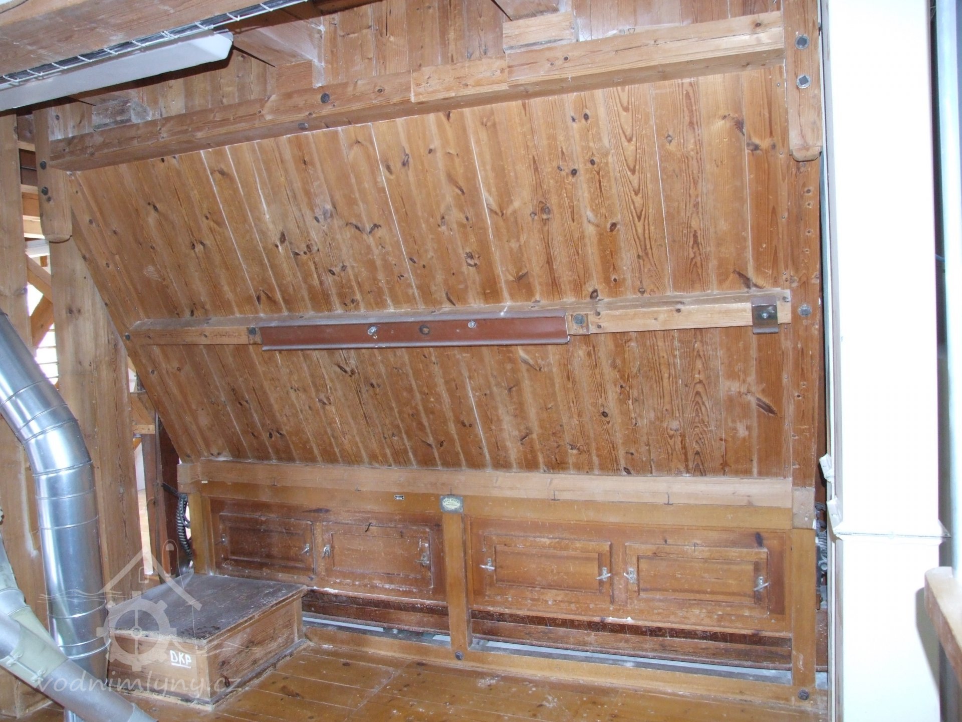 Mlýn Na Závodí č.p. 105, Holasovice – podstřeší: původní aspiratér ("tarár"), červen 2023, © Jiří Hořák, (Prvky na obrázku: aspiratér)