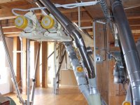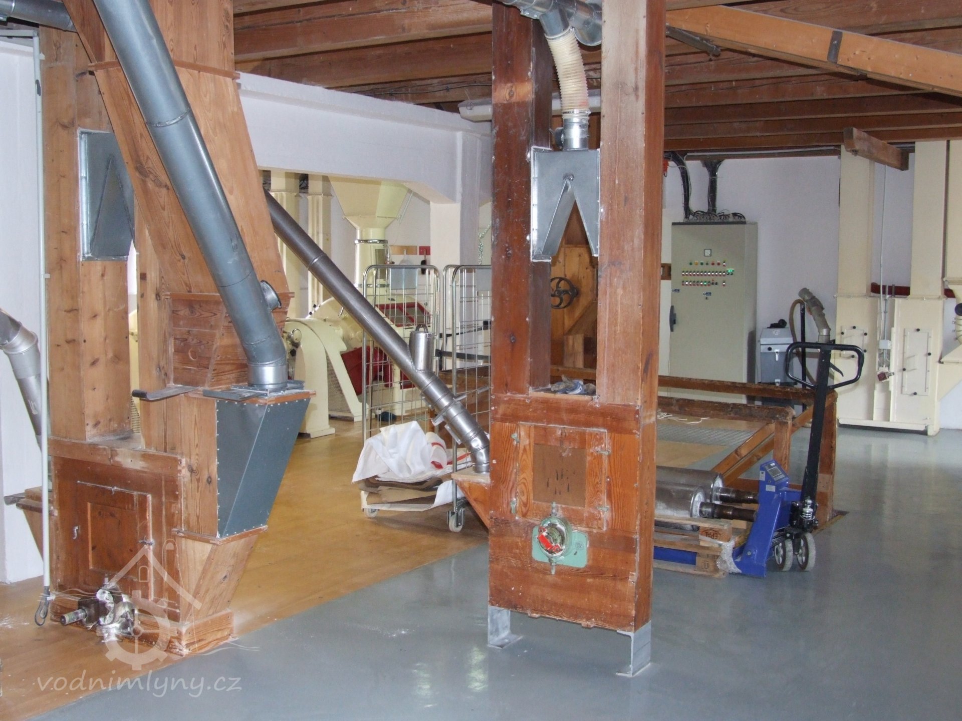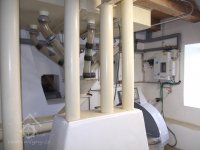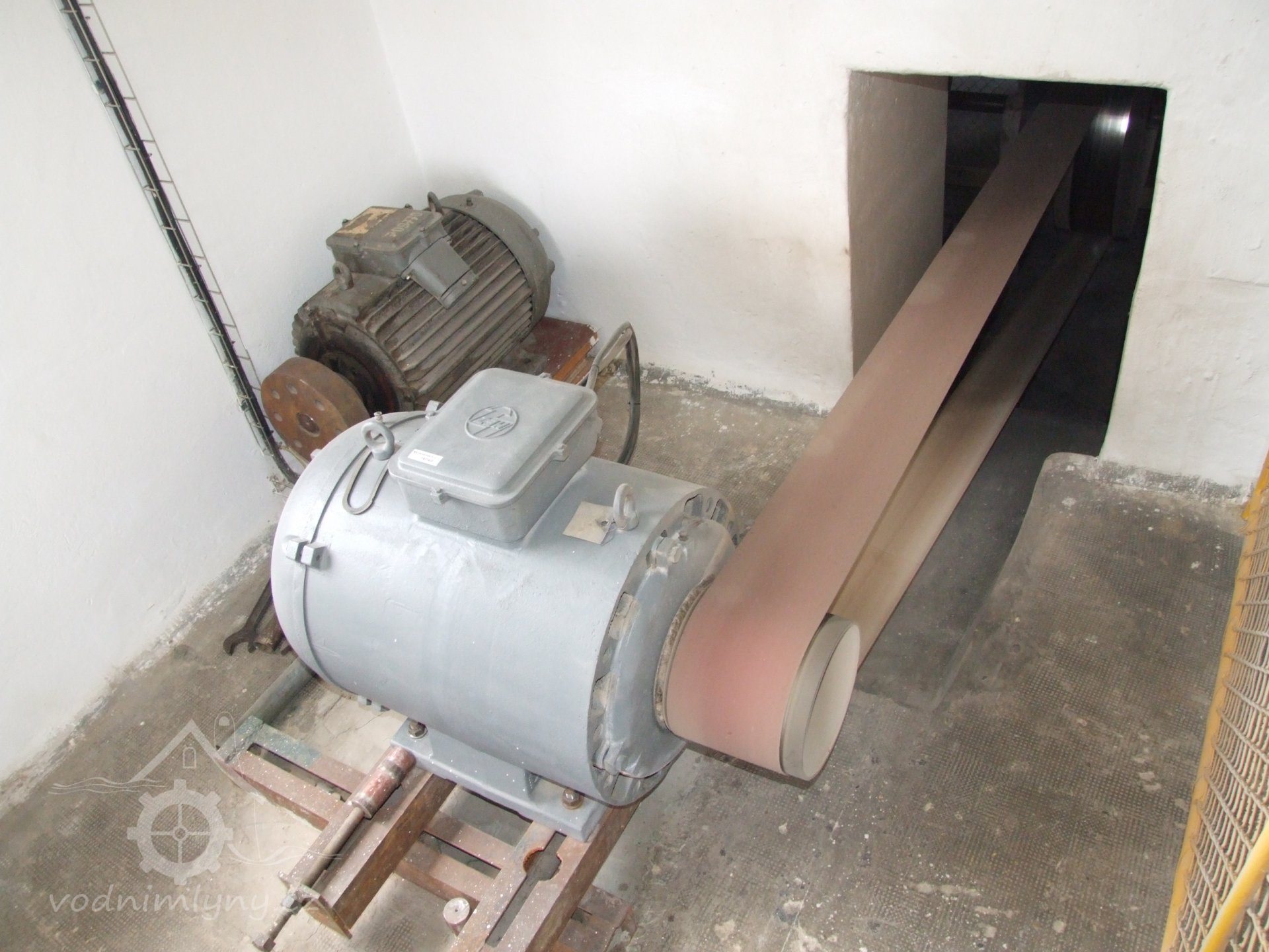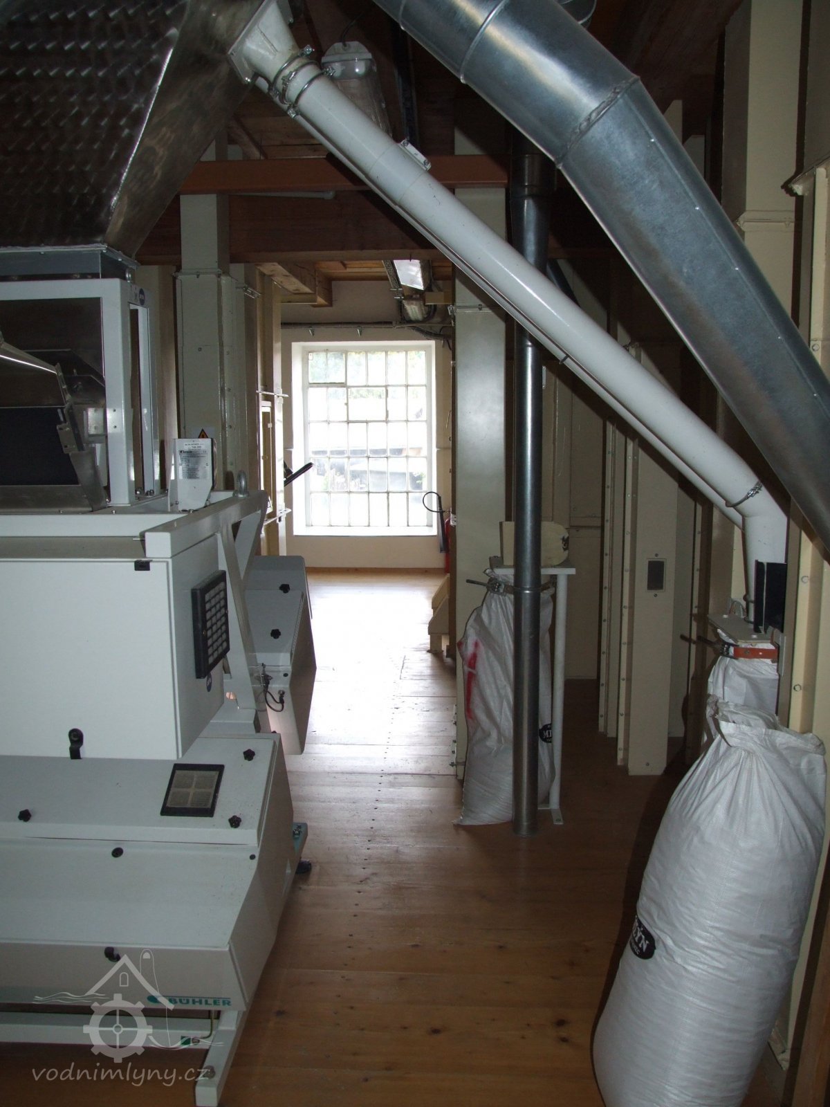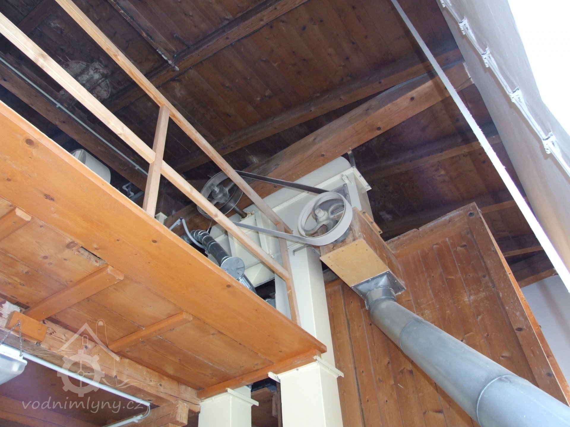 Mlýn Na Závodí č.p. 105, Holasovice – 1. patro: moderní dopravníky, červen 2023, © Jiří Hořák, (Prvky na obrázku: výtahy a dopravníky)