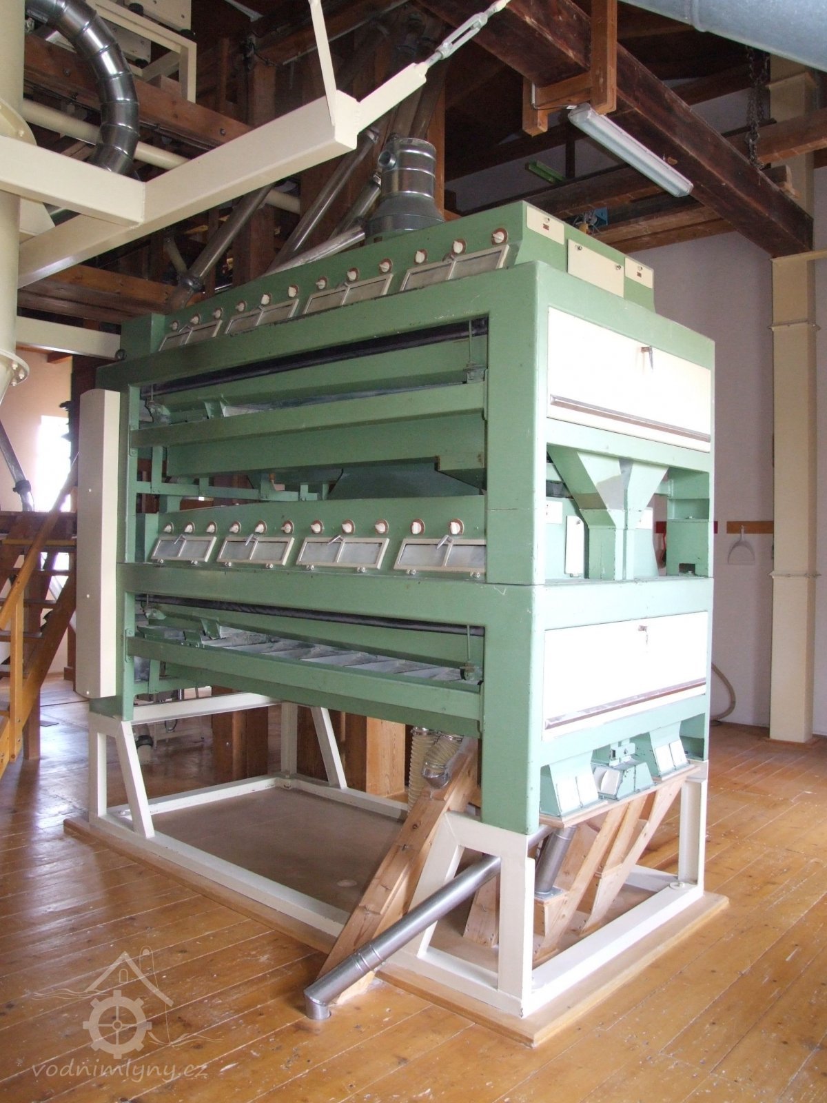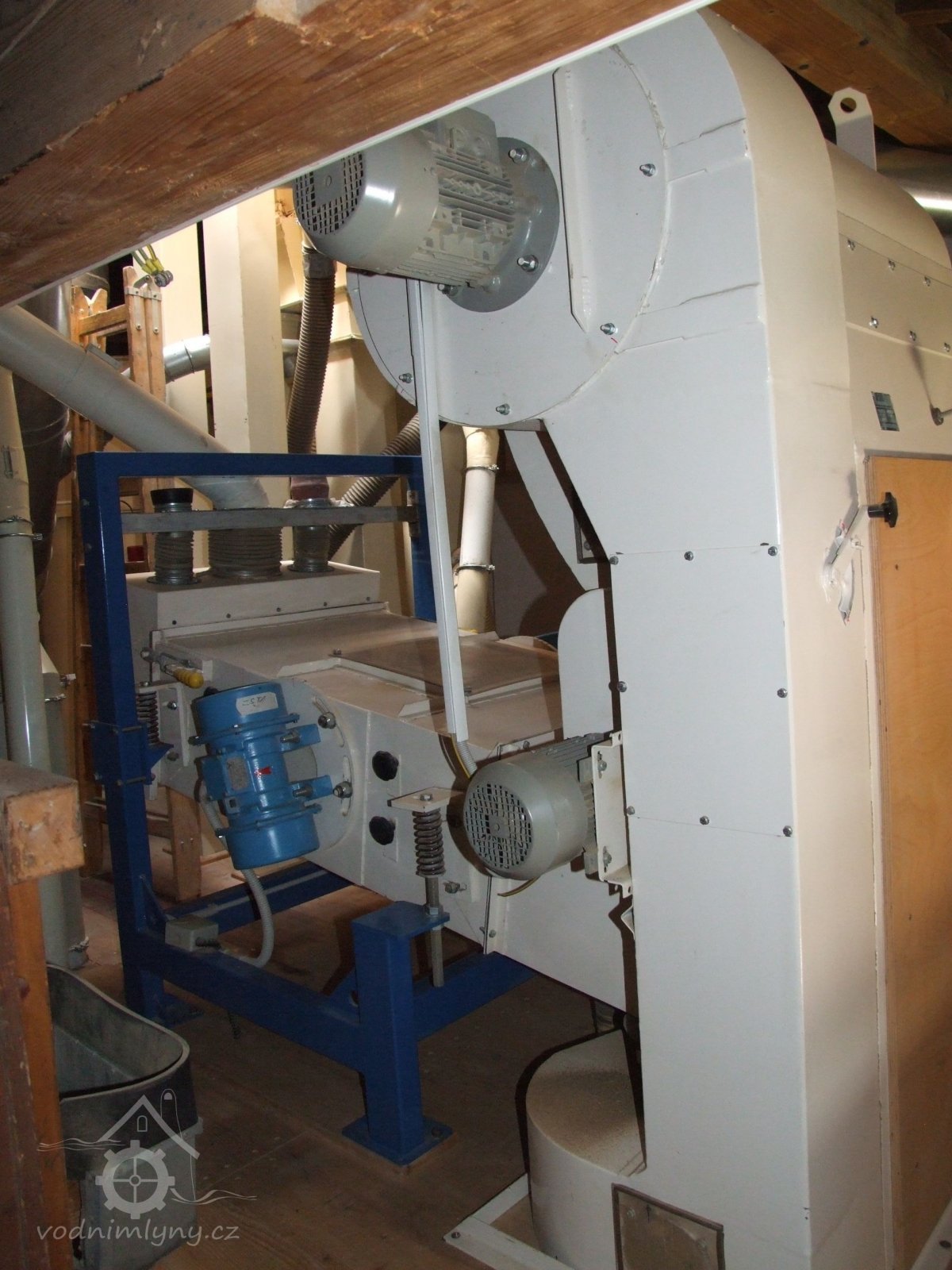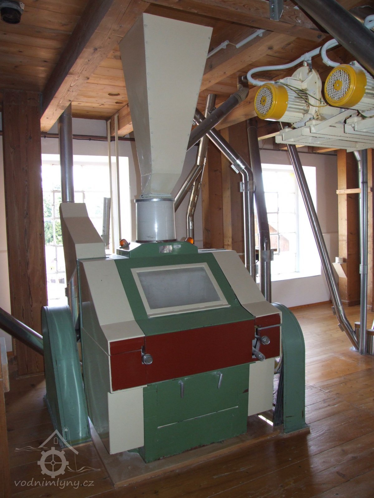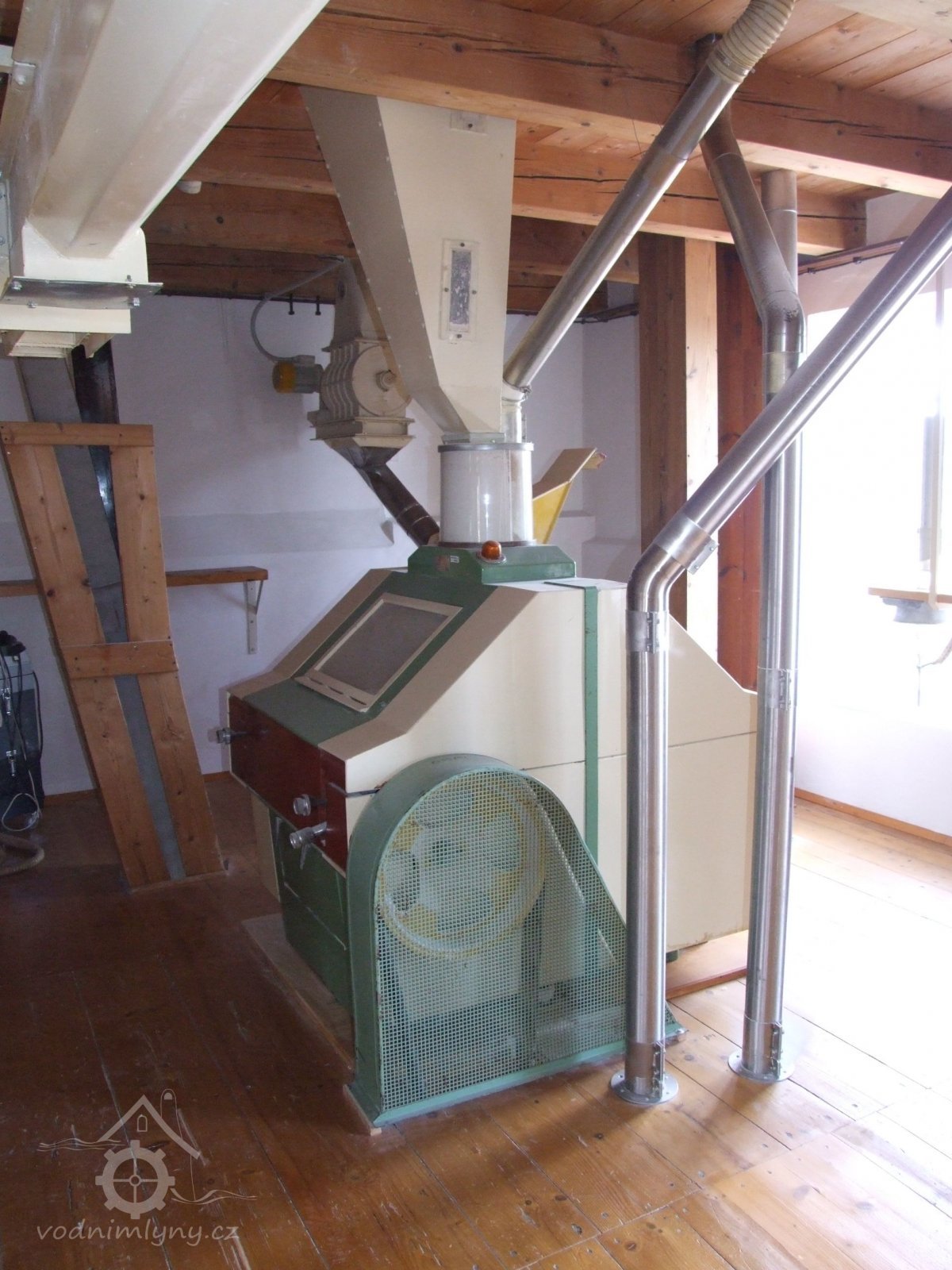 Mlýn Na Závodí č.p. 105, Holasovice – 2. patro: moderní čistička obilí, červen 2023, © Jiří Hořák