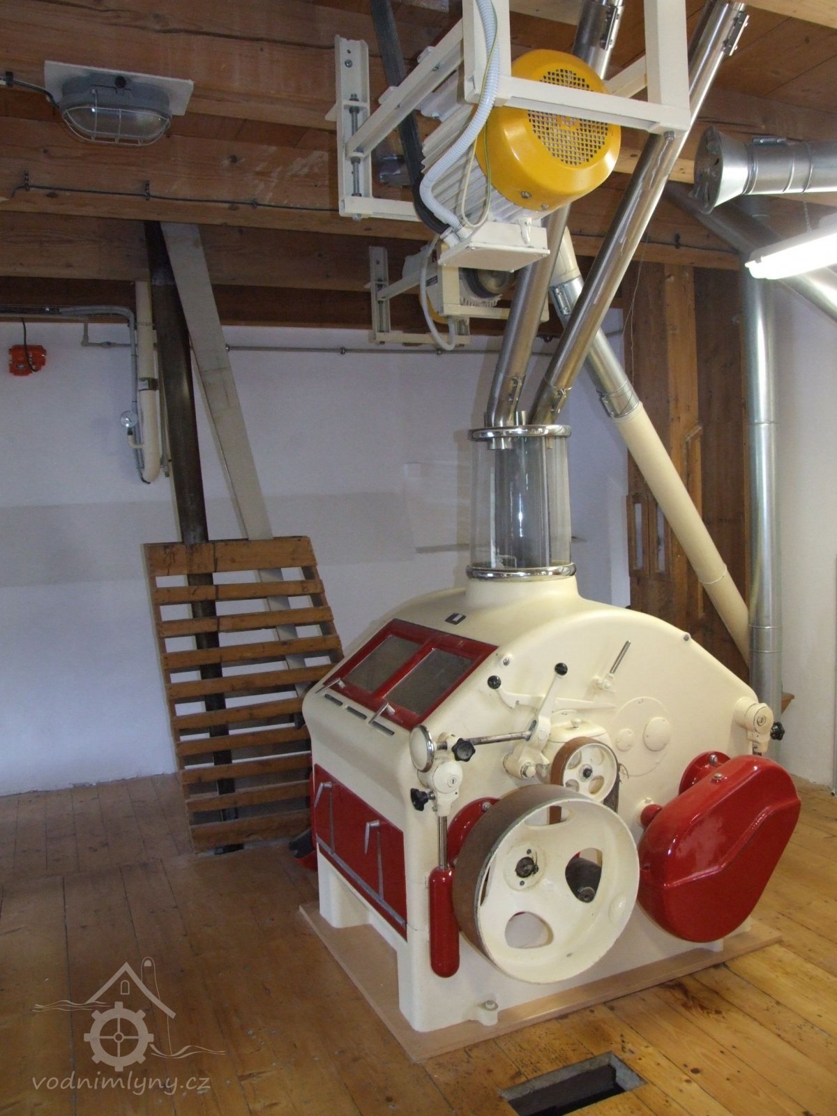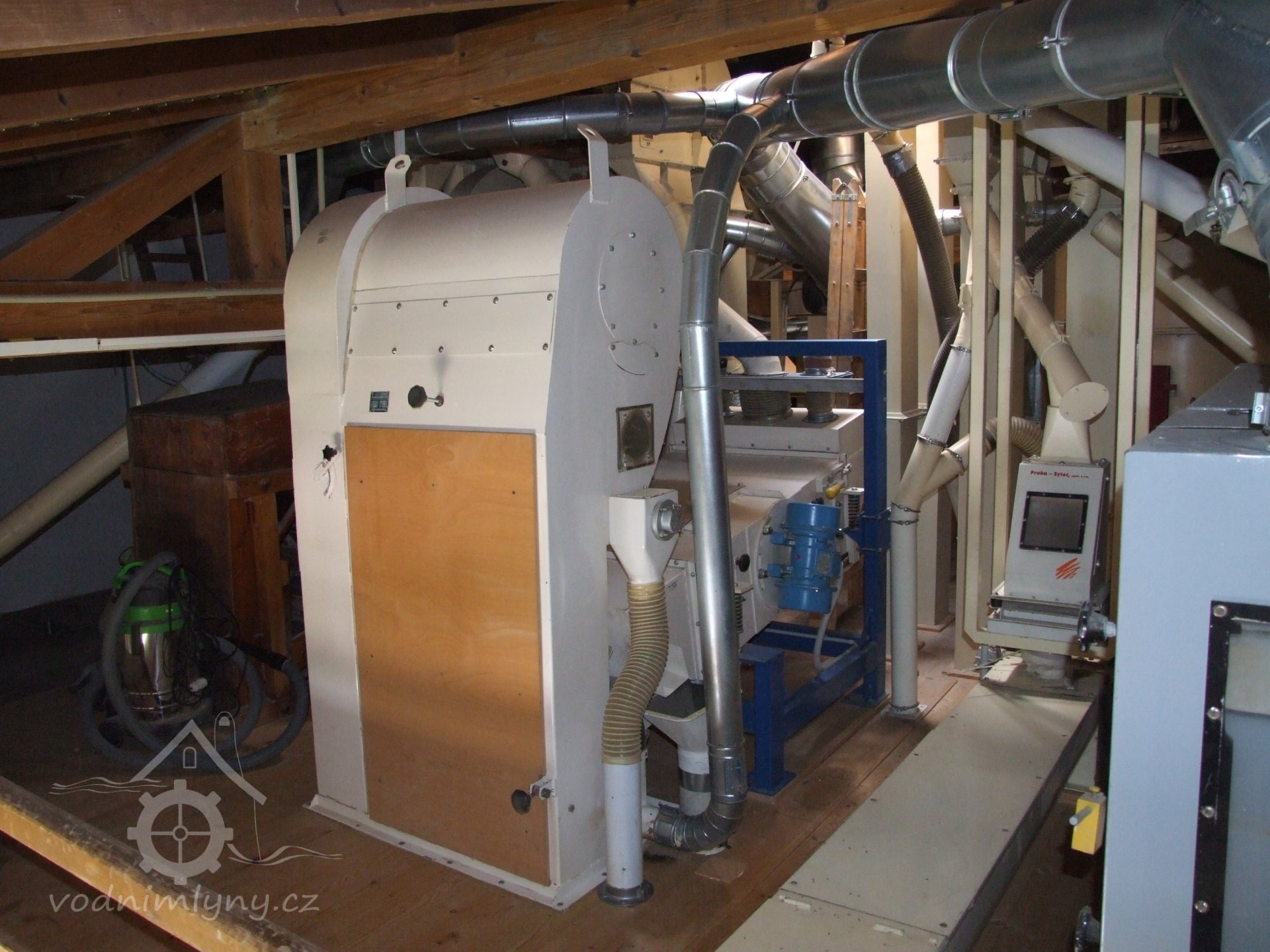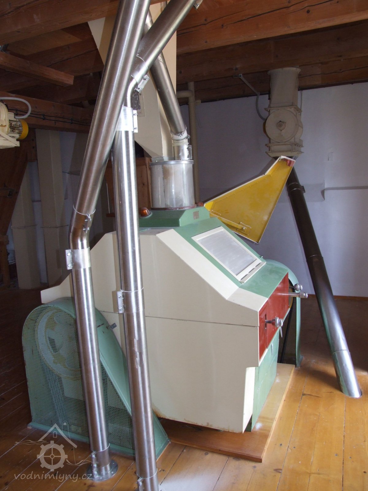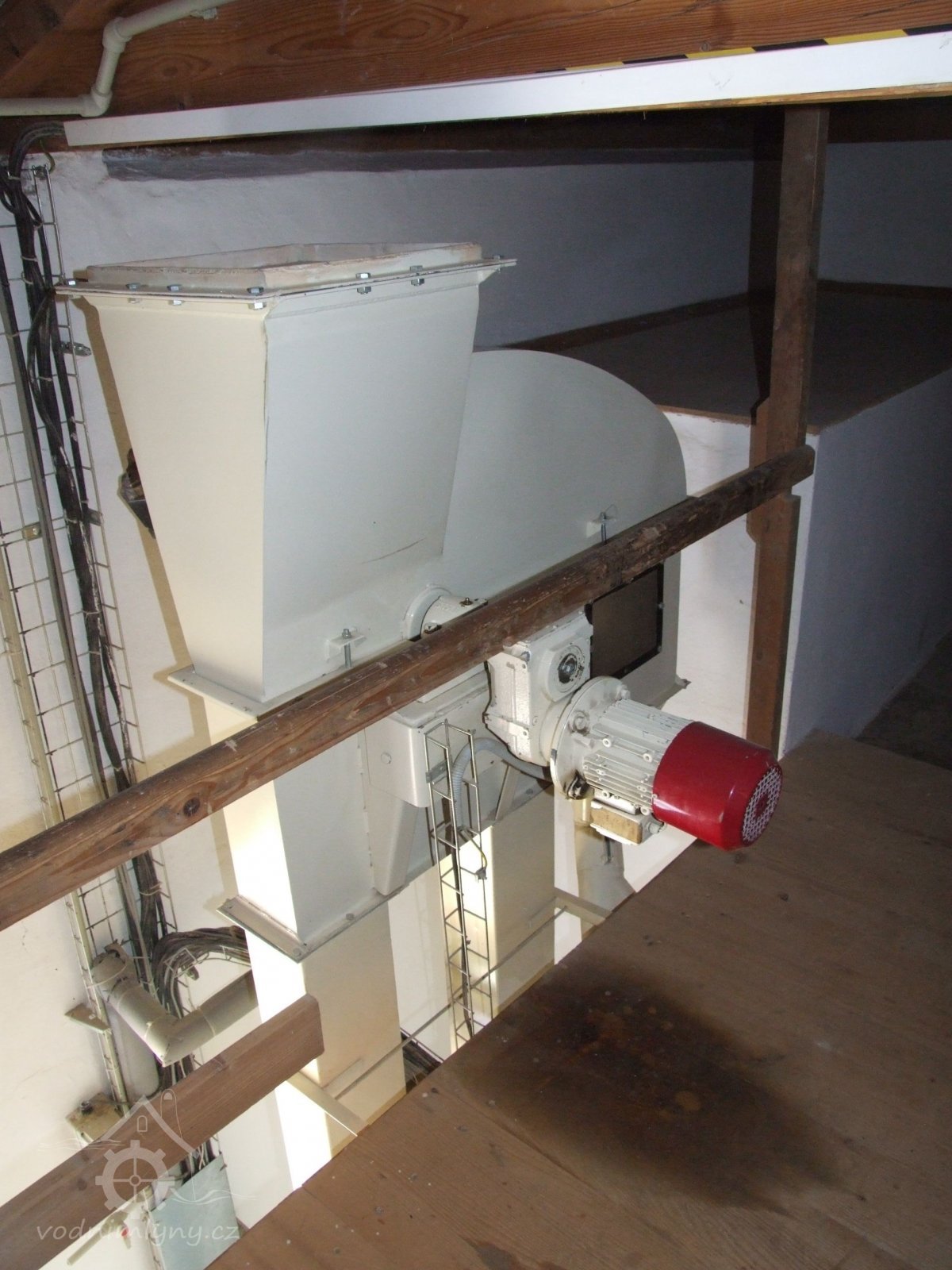 Mlýn Na Závodí č.p. 105, Holasovice – 2. patro: moderní čistička obilí, červen 2023, © Jiří Hořák