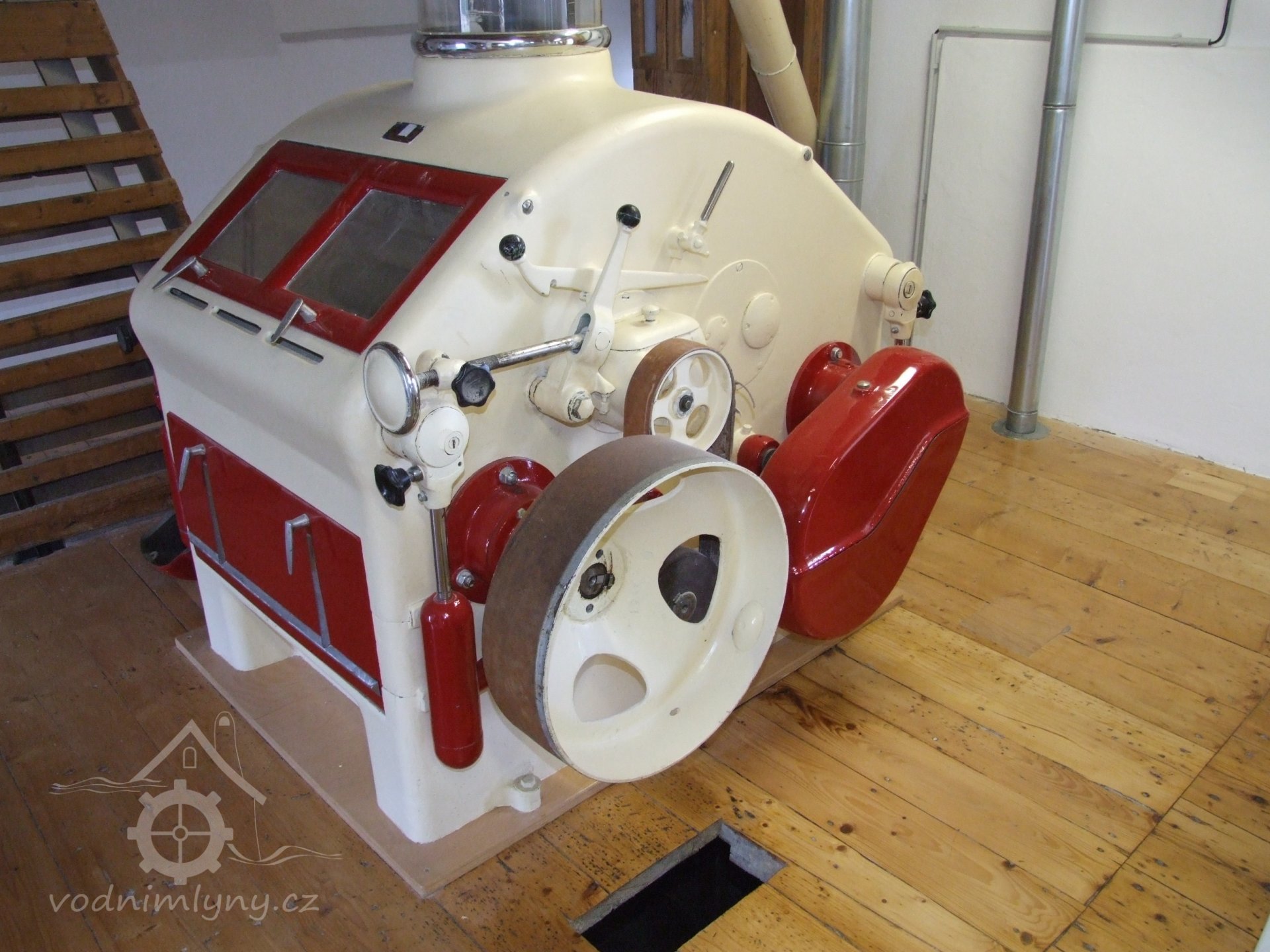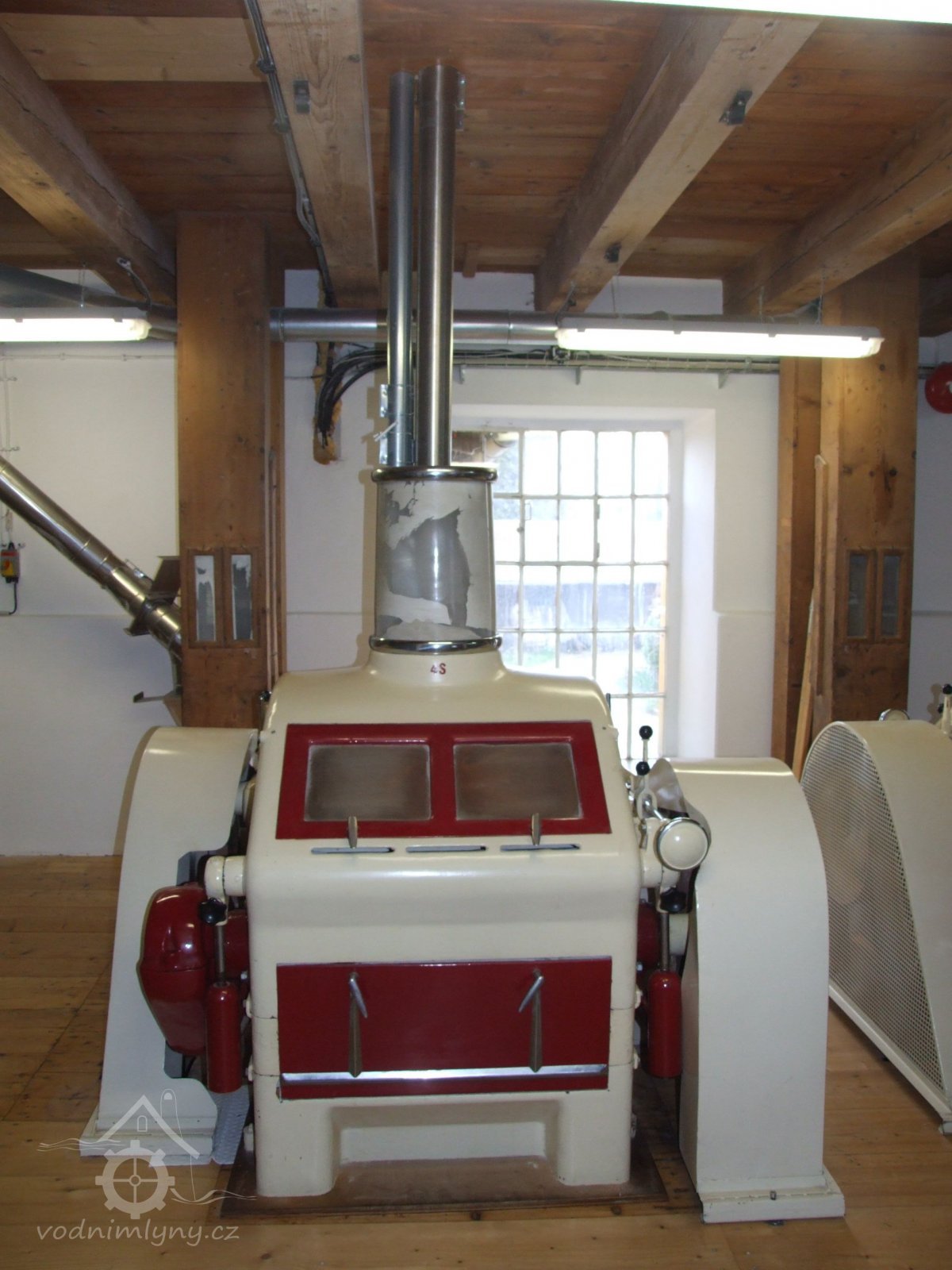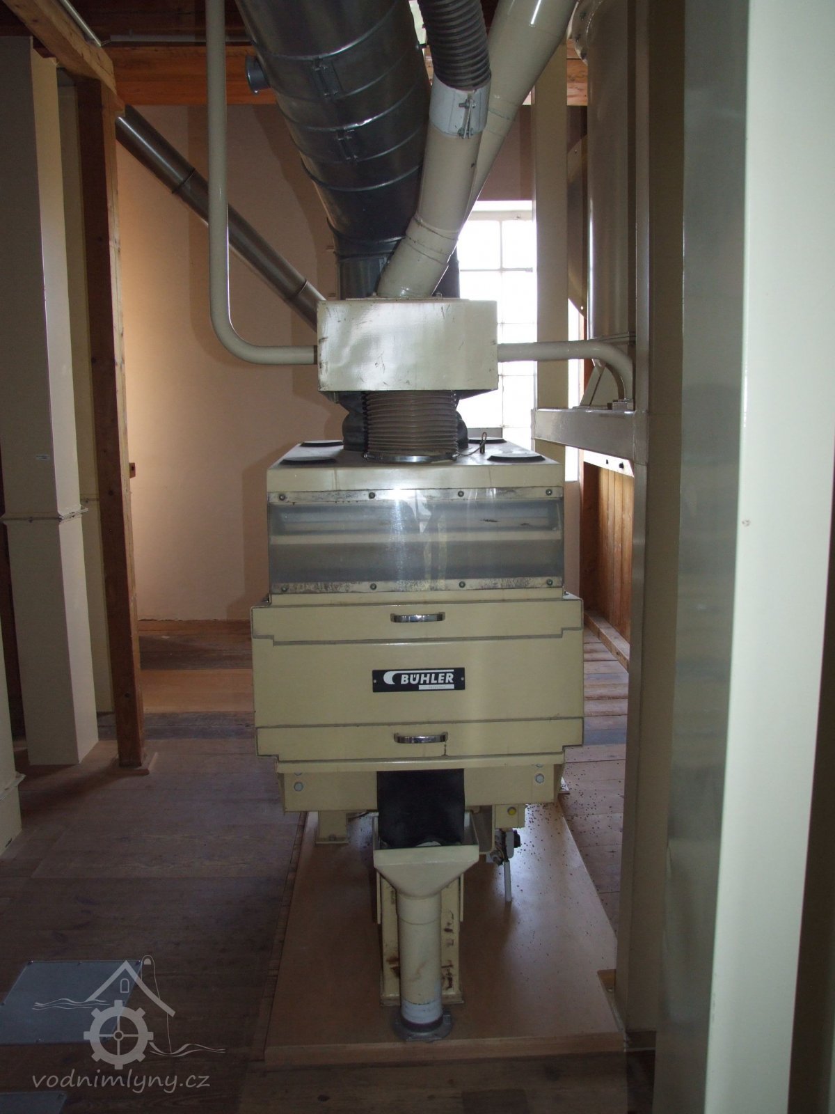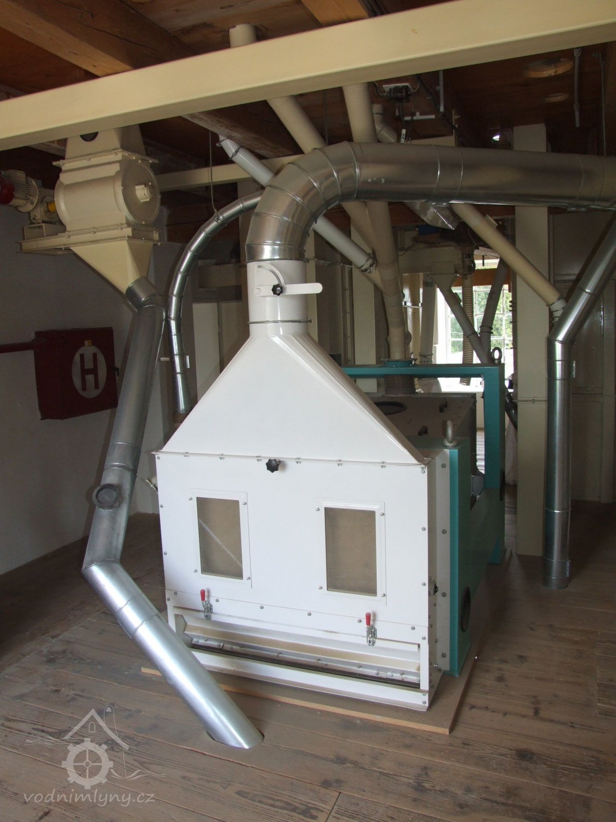 Mlýn Na Závodí č.p. 105, Holasovice – 2. patro: moderní čistička obilí, červen 2023, © Jiří Hořák