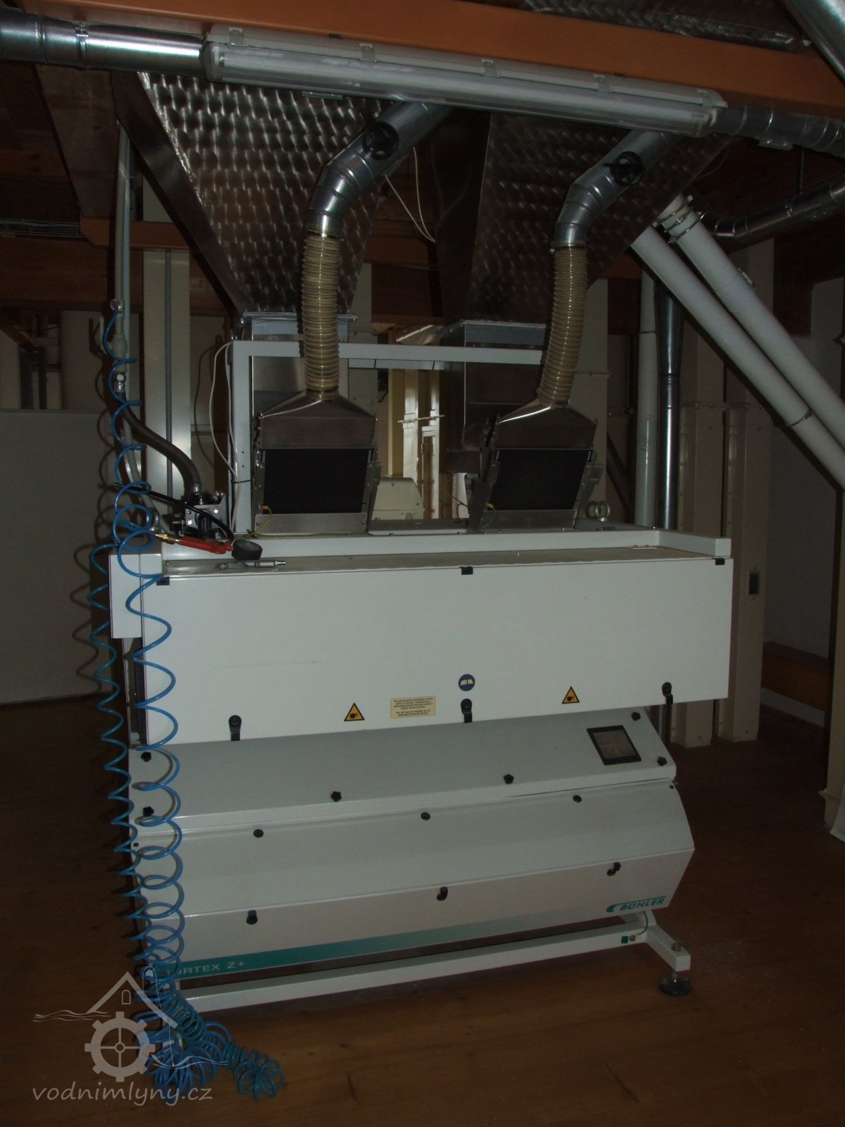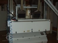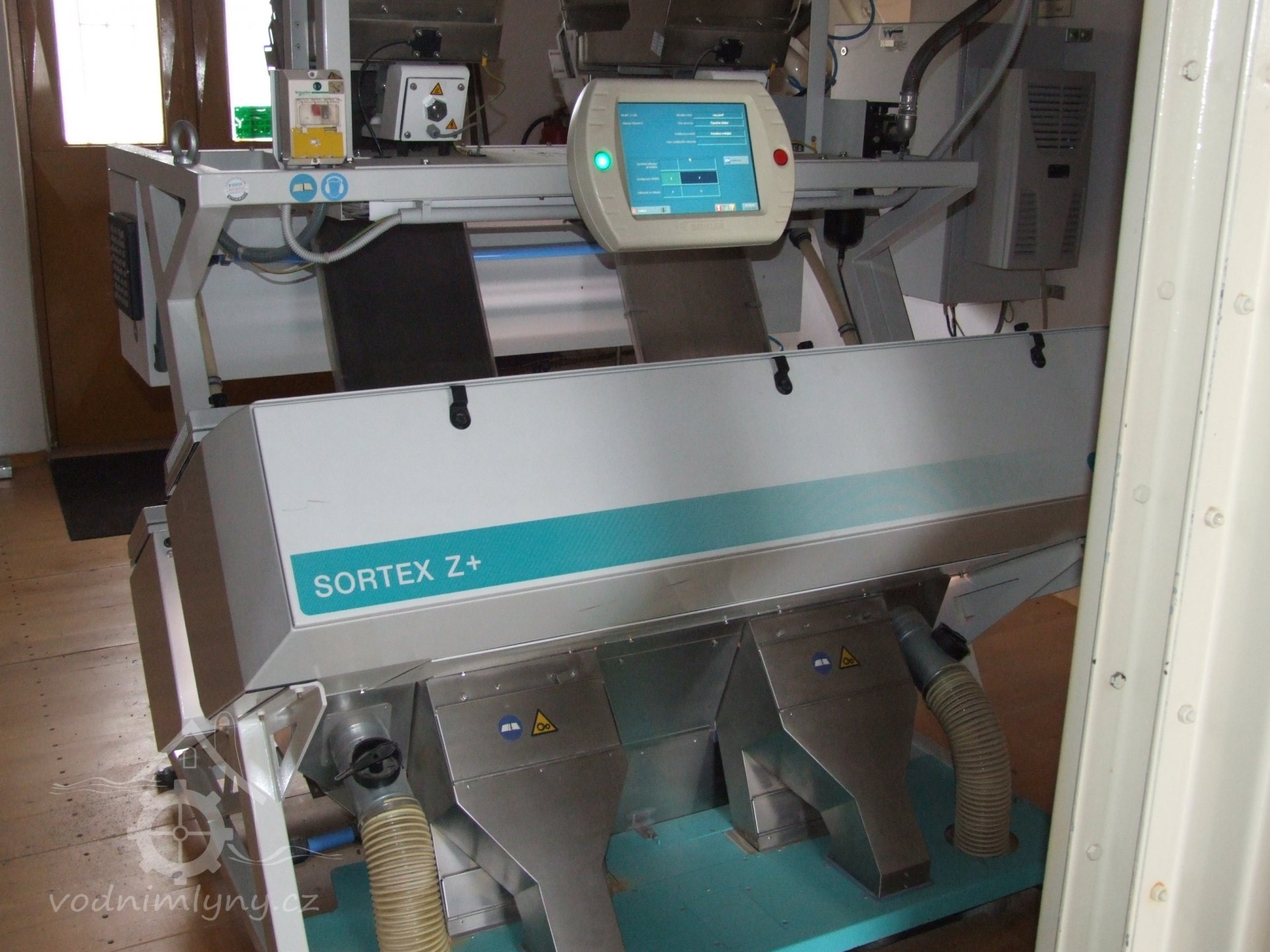 Mlýn Na Závodí č.p. 105, Holasovice – přízemí: optický třídicí stroj moderní čističky obilí, červen 2023, © Jiří Hořák
