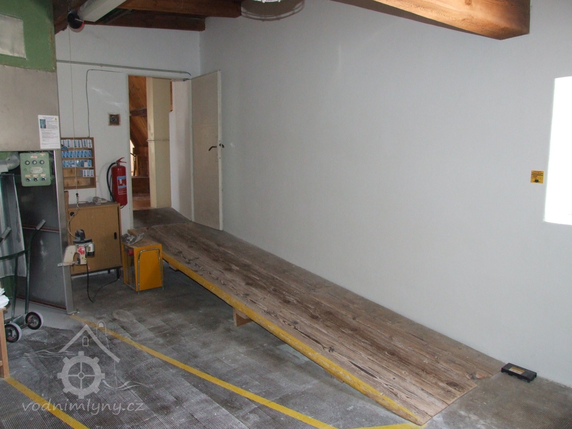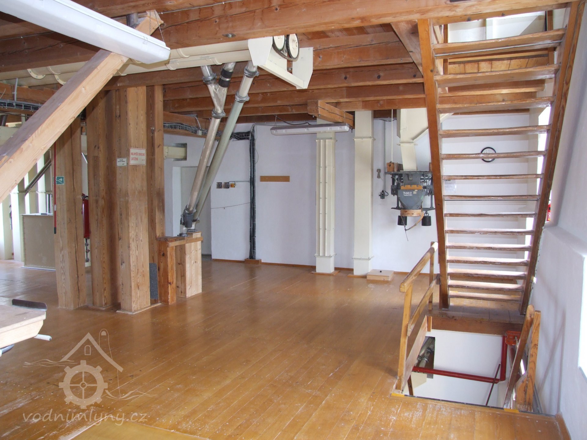 Mlýn Na Závodí č.p. 105, Holasovice – 1. patro: moderní pytlovací lávka, červen 2023, © Jiří Hořák, (Prvky na obrázku: pytlovací lávka)
