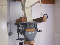 Mlýn Na Závodí č.p. 105, Holasovice – 1. patro: dvoukomorová dvouválcová (dva samostatné válce na jedné společné hřídeli) dvoupatrová moučná míchačka, červen 2023, © Jiří Hořák, (Prvky na obrázku: míchačka)