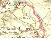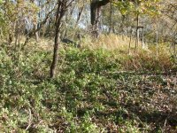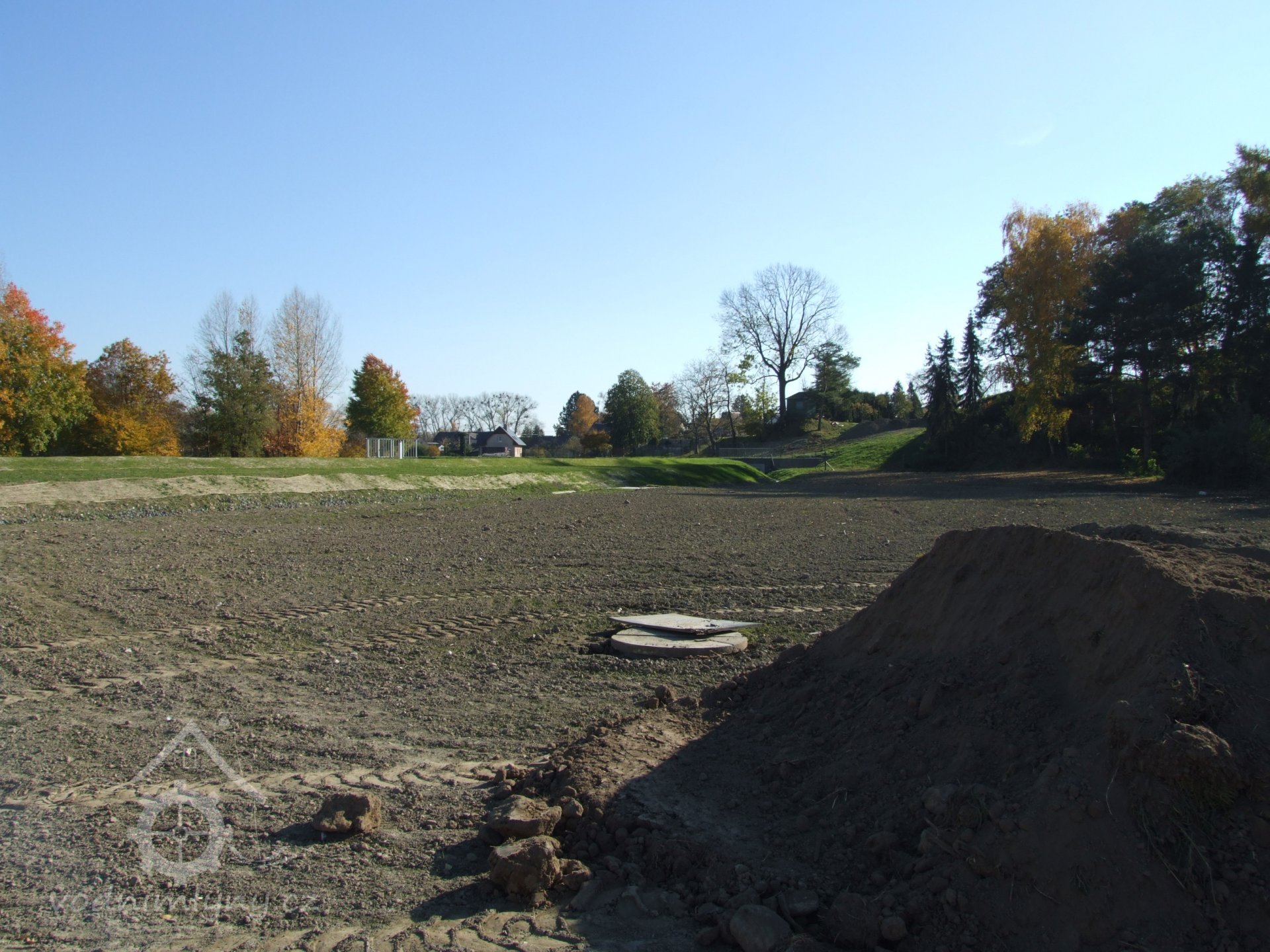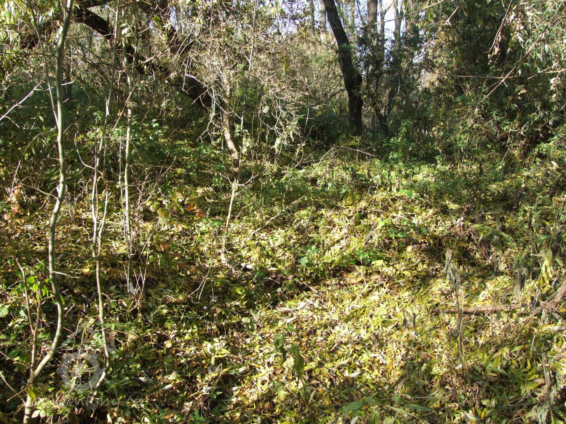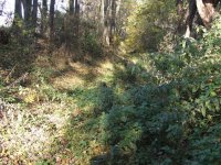 Červený mlýn č.p. 73, Holasovice – vodní právo: 'jalový odpad', spíše vracečka, již dnes vůbec neexistuje a trasu možno poznat jen dle historických specializovaných vodohospodářských map a pak v terénu podle nich jít a neuhnout. Koryto bylo uprostřed fotografie (voda protékala zleva doprava), říjen 2021, © Jiří Hořák, (Prvky na obrázku: náhon)