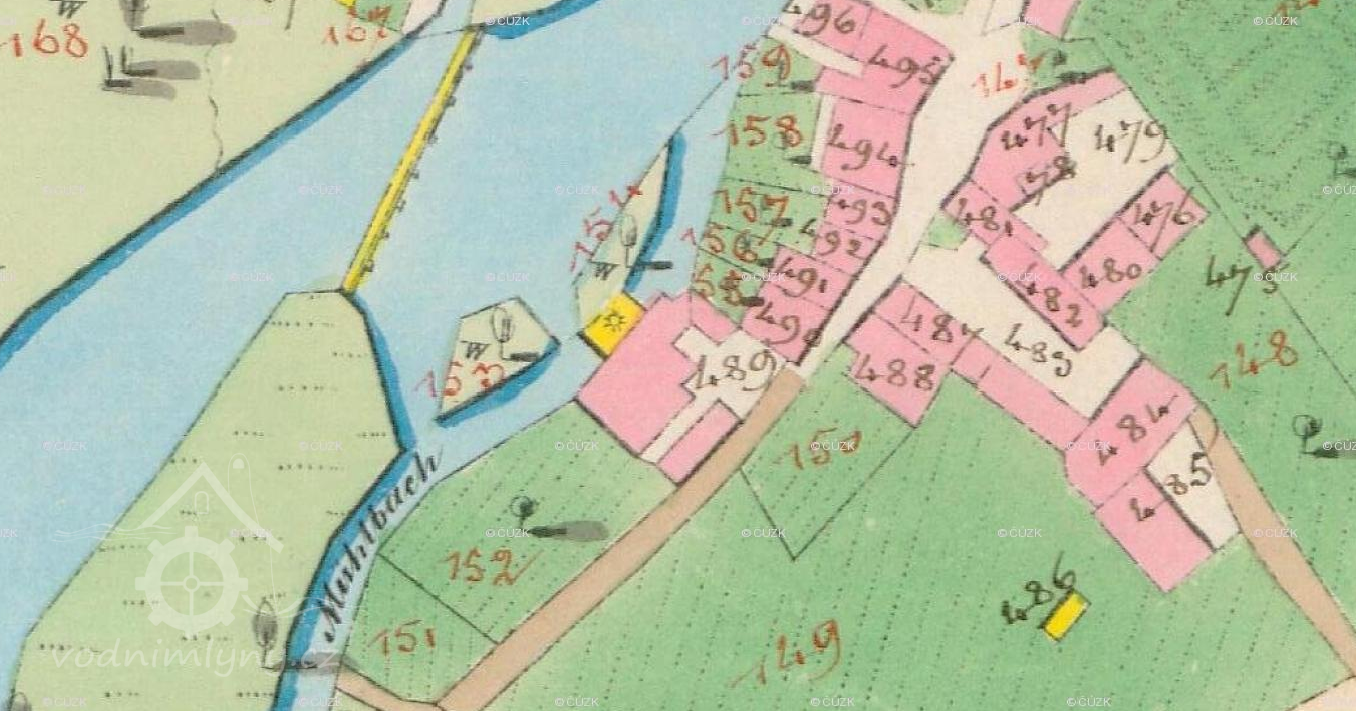 PopisV roce 1930 mlýn poháněla 2 kola na spodní vodu, průtok 1.09 m3/s, spád 1.7 m, výkon 11 HP.