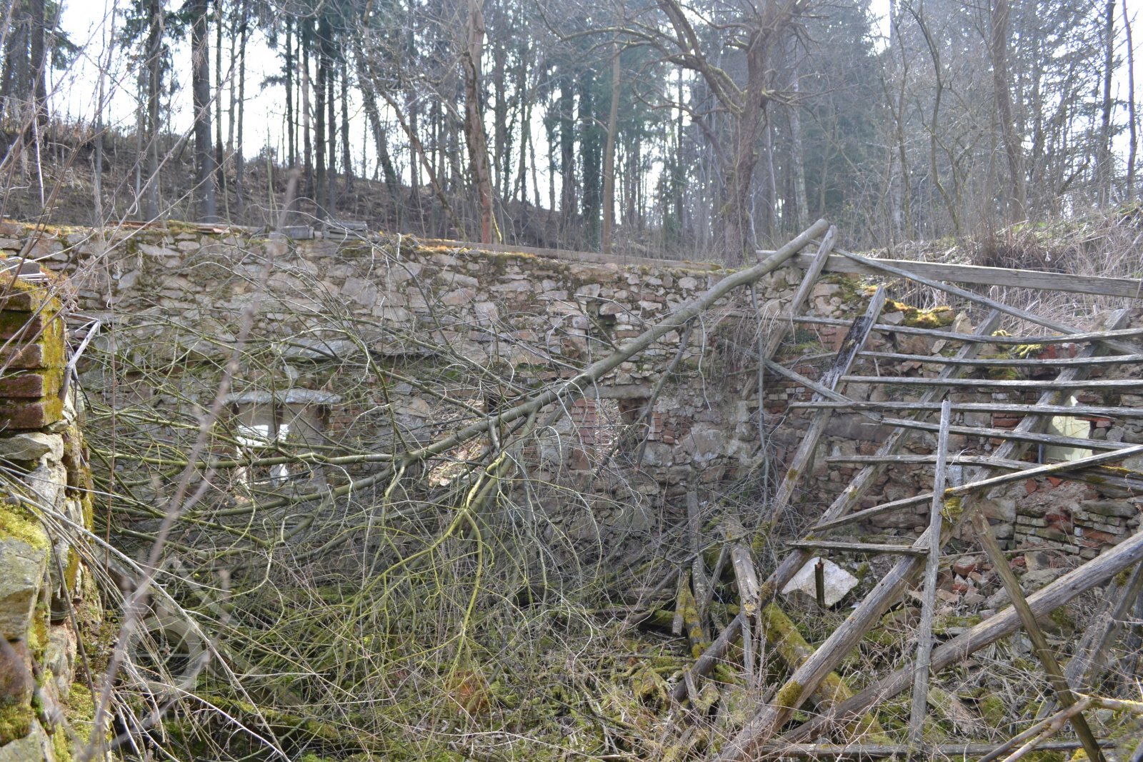1654 u mlýna 14 strychů polí a louky na 3 fůry sena, vrchnosti platí z polí 1 zl. 7 kr.