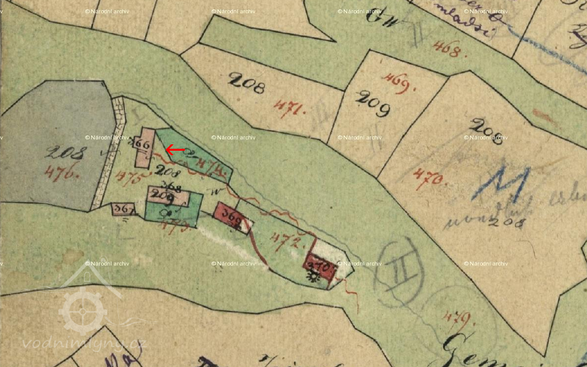mlýn má 1 složení a 2 stoupy, v 18. stol. přikoupeny 2 rybníky nad mlýnem