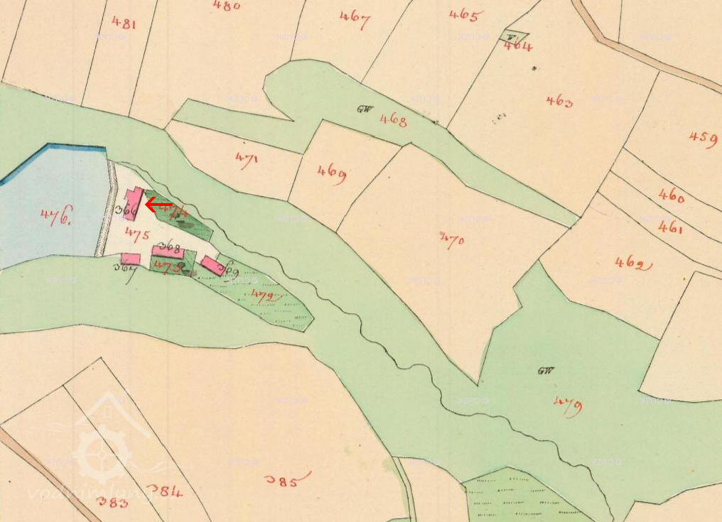 Mlýn je zachycen již na mapě I. voj. map.