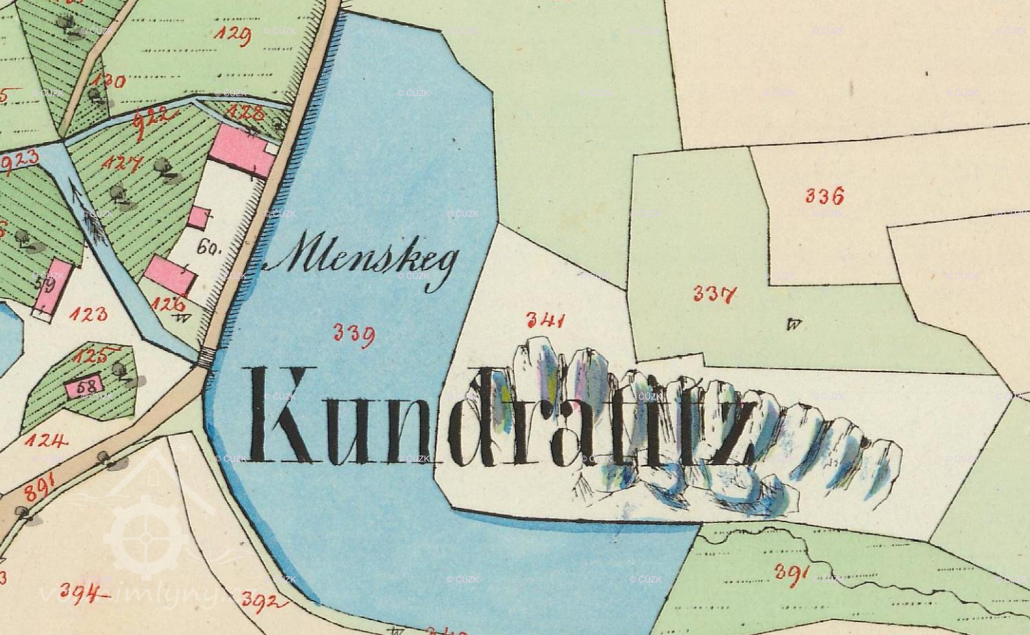 k mlýnu náleželo 24 strychů a 4 věrtele polí, palouček u chodovské cesty a louka "V milém Bohu"