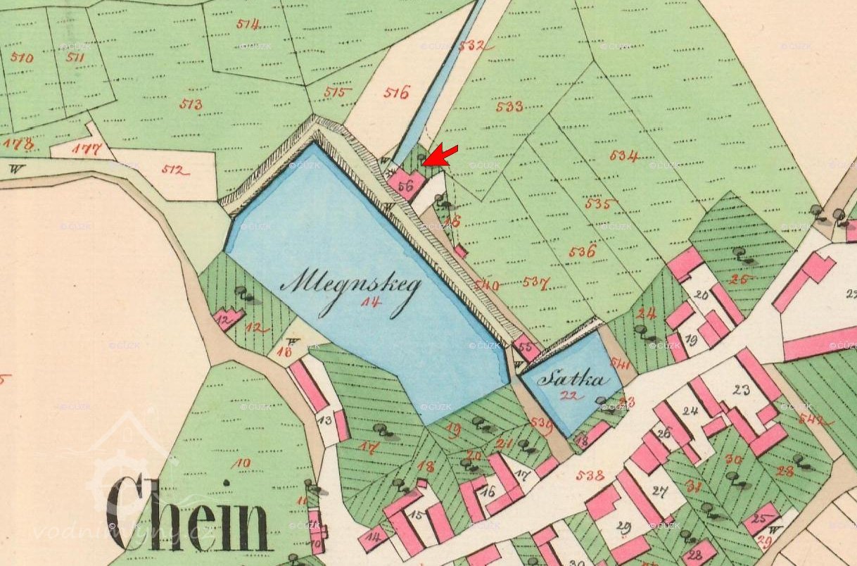 Mlýn založen roku 1727 pražským měšťanem Matějem Myslivečkem (otec slavného skladatele, zemský mlynář a majitel několika dalších mlýnů) vlastním nákladem 600 zlatých. Podle smlouvy měl platit nájem ve výši „třicet zlatých rejnských a jednoho vykrmeného vepře Strahovskému klášteru“. Další povinností mlynáře bylo mletí obilí pro Strahovský klášter, ale také se zavázal mlít pro chýňské a úhonické občany. Úhonice byly totiž farní obcí Chýně a měly stejnou vrchnost: strahovské premonstráty.
