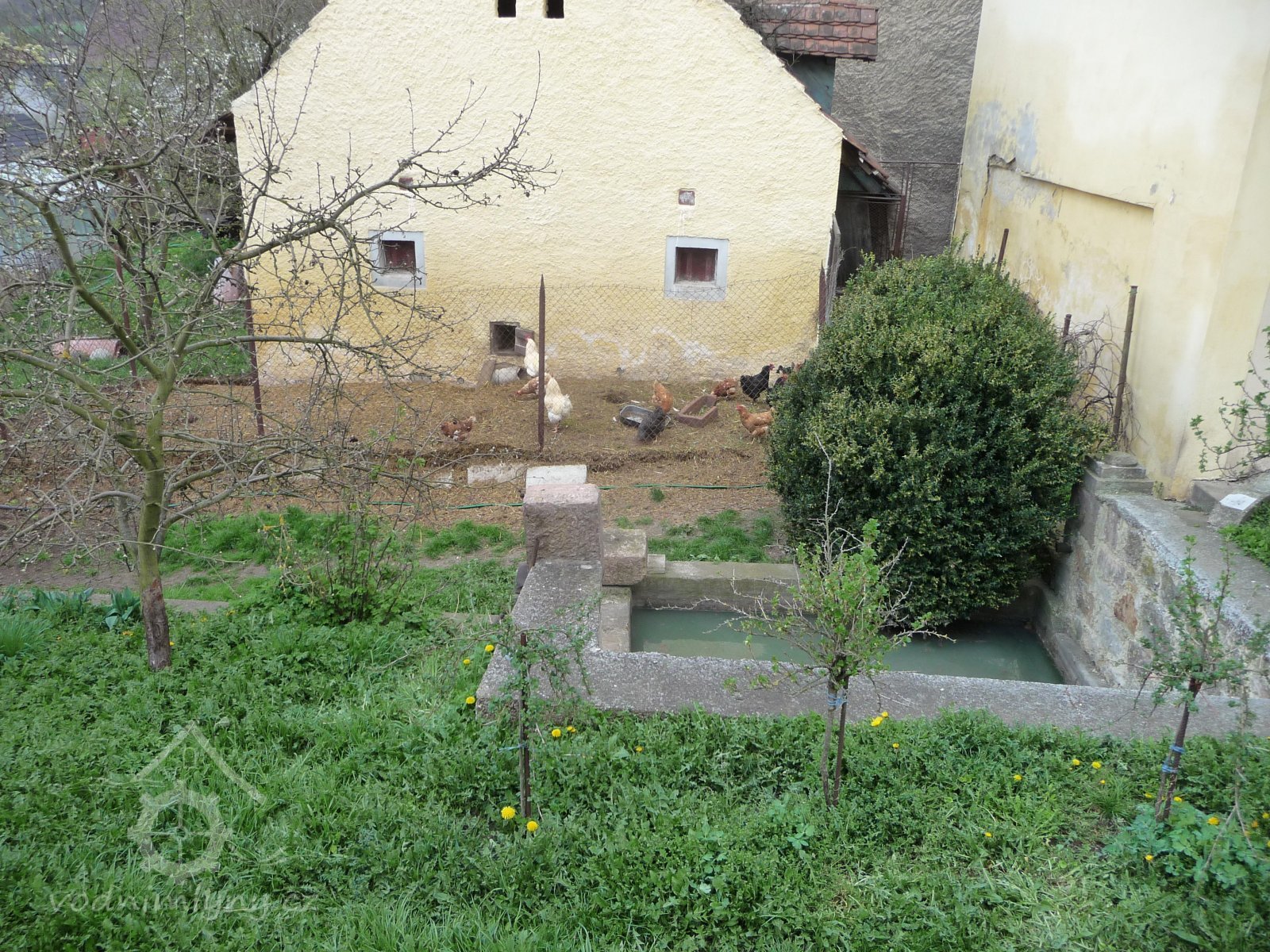 Voda byla přiváděna na mlýn z malého návesního rybníku, dnes požární nádrž. V zahradě domu pod požární nádrží je malá betonová akumulační nádržka, ze které vedl náhon. Zbytky zatrubněného náhonu jsou patrné na zahradě vedle betonové zídky. Z vysokého kamenného tarasu voda stéká do koryta a odtéká do údolí do potoka. U mlýna je patrná cesta vody do lednice, jejíž zbytky se dochovaly.