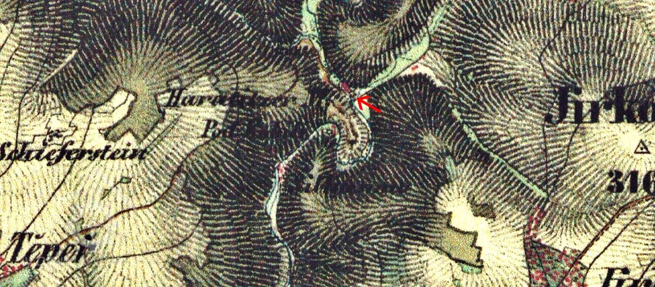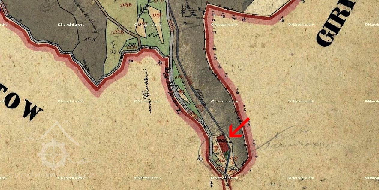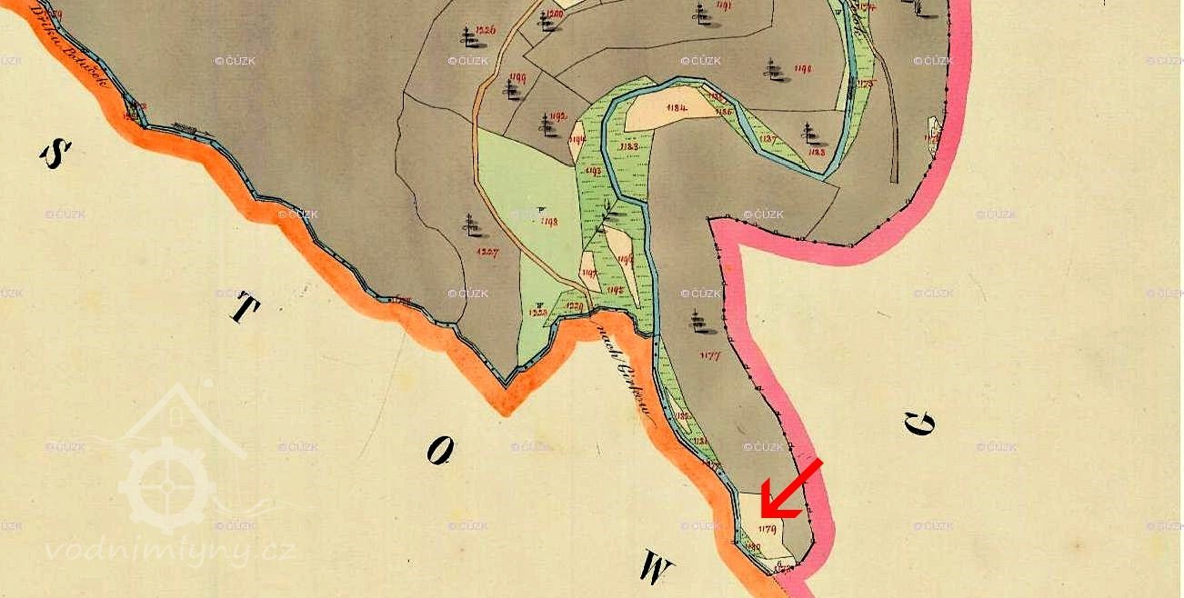 1843: původní náhon šel přes parcely p.p.č. 1177 a 1179 k.ú. Bratříkov