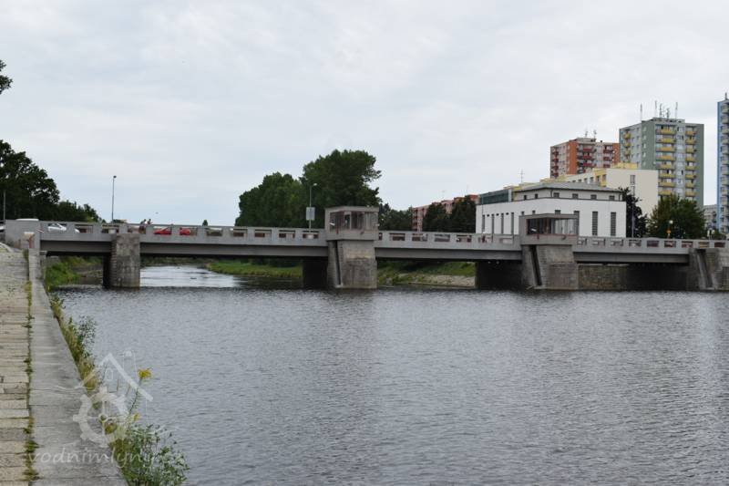 Vlastní most je se čtyřmi kamennými pilíři z návodní strany zúženého profilu, se břehy zpevněnými kamennými stěnami. Z návodní strany jsou v úrovni vozovky nad středovými pilíři umístěny při vetknutí do zábradlí dvě prosklené kabiny pro ovládání jezu.
