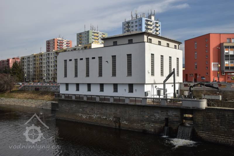 K mostu s válcovým jezem funkčně náleží malá vodní elektrárna, postavená v letech 1948-1951 na místě zbouraného Cafourkova mlýna. Střízlivě pojednaná, avšak elegantně působící stavba malé vodní elektrárny je architektonicky jednoduše členěna. Horizontálně je stavba oddělena na tři úrovně. Hmotově nejobjemnější střední obdélný kubus stavby dosedá na spodní půdorysně a hmotově menší část stavby, přičemž na vrcholu středního kubusu vyrůstají dvě objemově drobnější stavby ukončené nízkými valbovými střechami. Vertikálně fasádu elektrárny pak nej výrazněji rozčleňují pravidelně rytmizovaná vysoká okna s drobným tabulkovým rastrem.